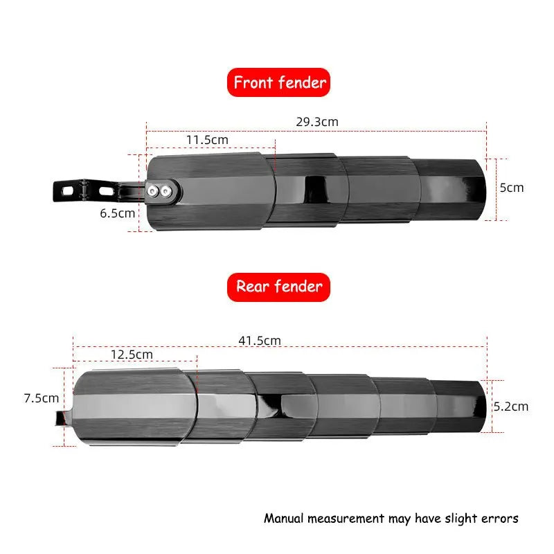 Potrivite pentru biciclete pliabile de 20" până la 26", aceste apărători oferă protecție versatilă pentru dimensiuni comune de biciclete și ajută la menținerea curată a transmisiei și a ciclistului în condiții meteo nefavorabile. Sunt incluse două șaibe de grosimi diferite pentru a se adapta la diferite profile de cadru, făcând instalarea simplă chiar și pe puncte de montare imperfecte. Culoarea neagră se potrivește cu majoritatea bicicletelor, oferind un aspect curat și discret pe orice traseu.