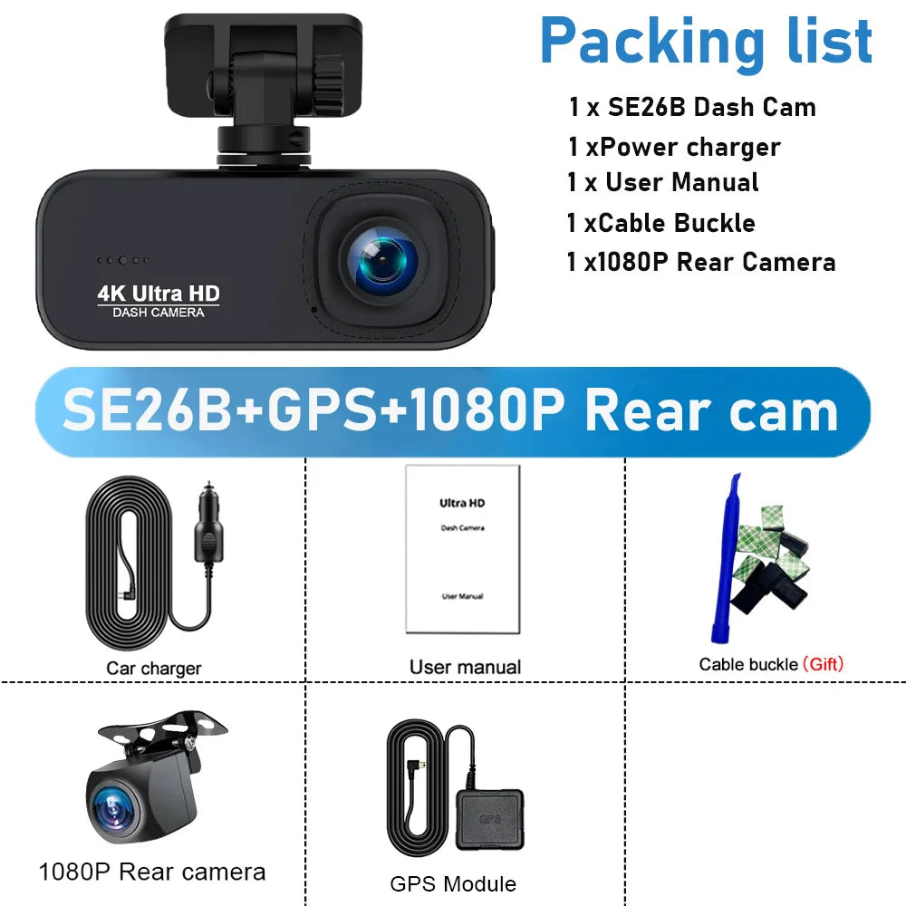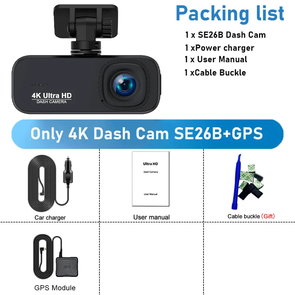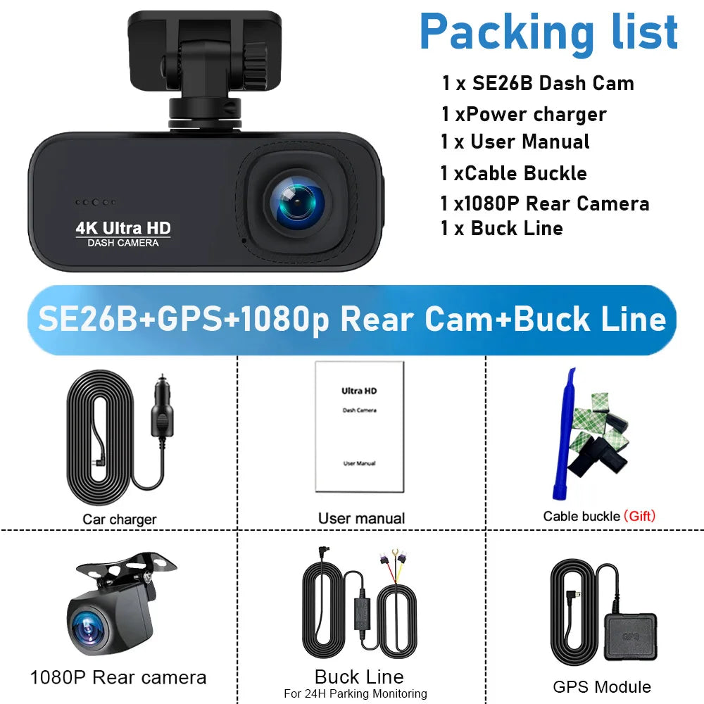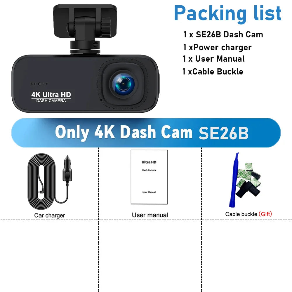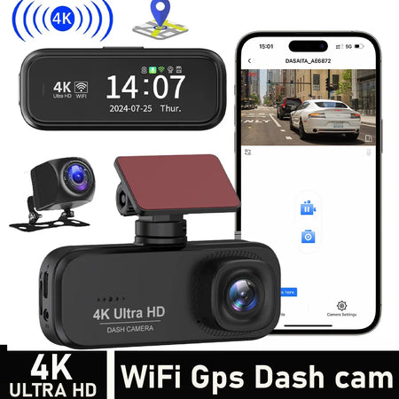 Cameră auto față și spate 4K/1080P cu WiFi încorporat, mod parcare 24H, vedere nocturnă, WDR, unghi larg 170°, senzor G, aplicație