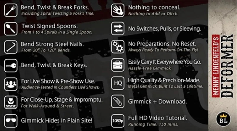 De la Left Magic, Deformer de Menny Lindenfeld este un instrument de precizie din metal pentru mentalism și magie de aproape. Acest prop non-electronic este construit pentru fiabilitate, oferind o direcționare subtilă și o iluzie fără cusur care se potrivește într-un buzunar pentru performanțe oriunde—de la apropieri intime la spectacole pe scenă. Indiferent dacă ești un începător care învață meseria sau un magician profesionist care își rafinează rutina, acest gimmick în formă de stilou te ajută să dezvălui gânduri cu încredere și stil.