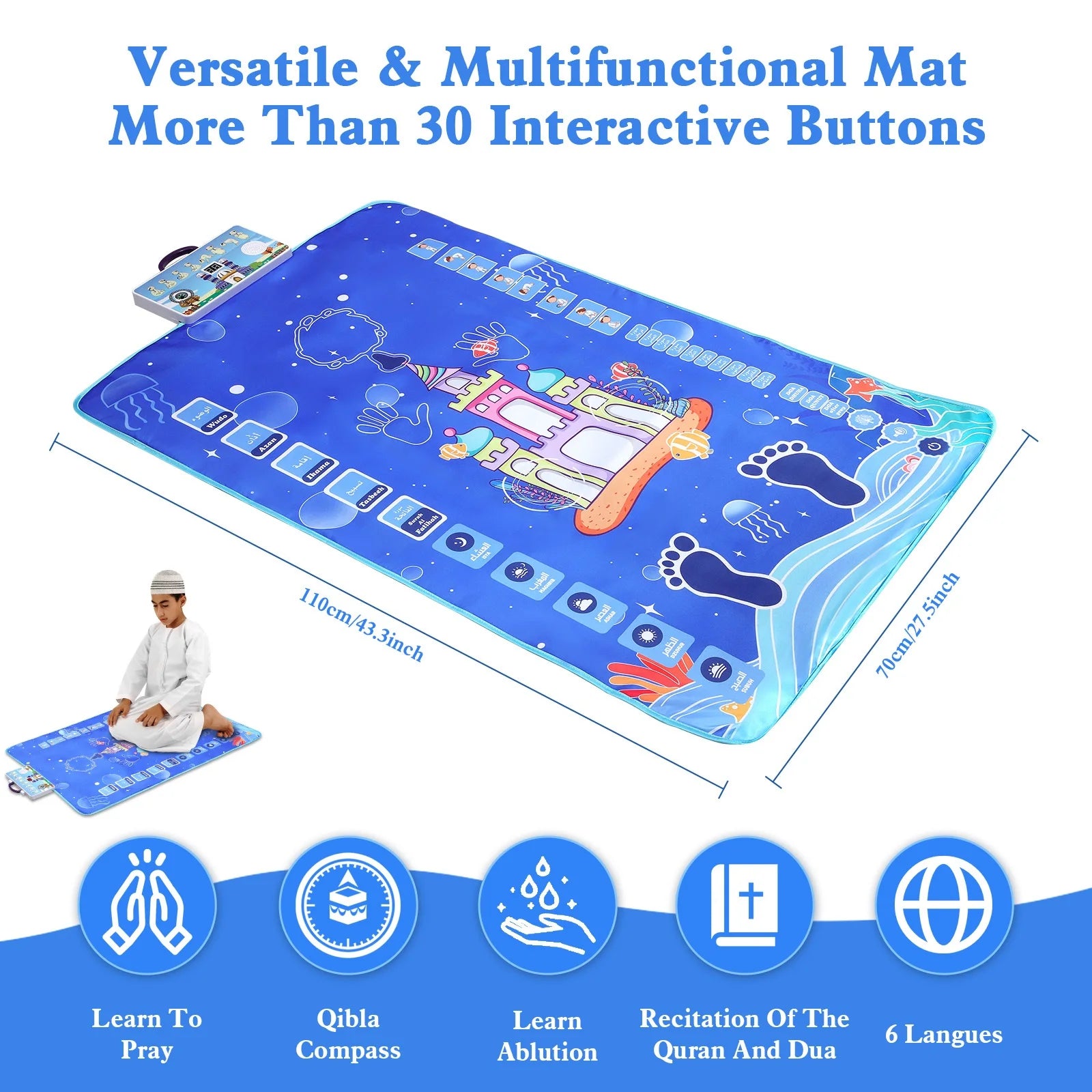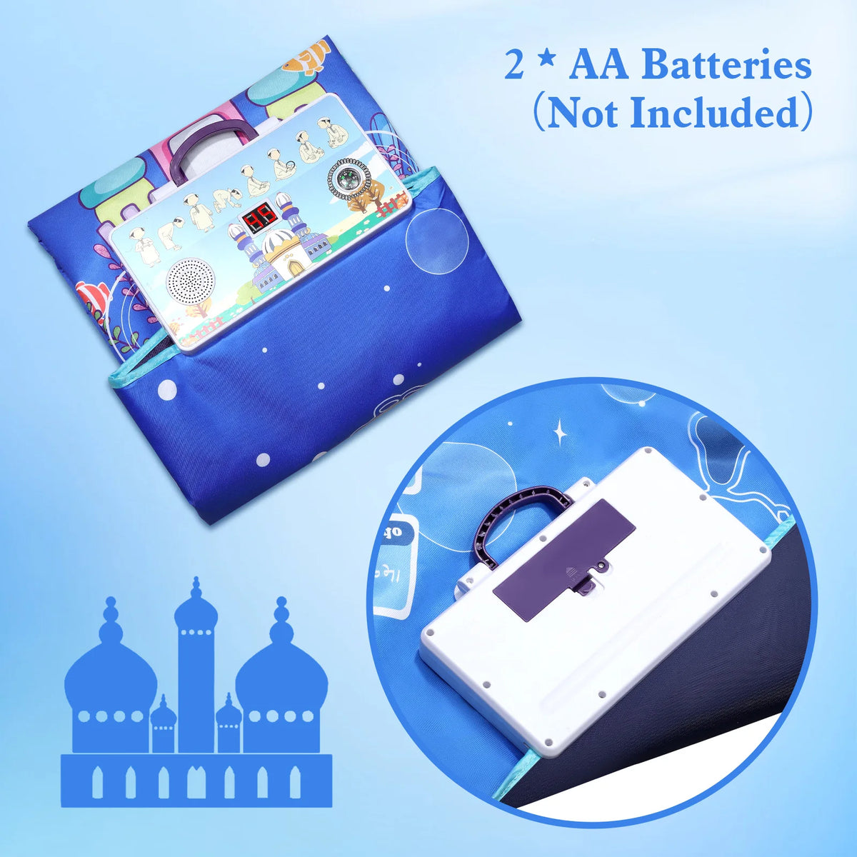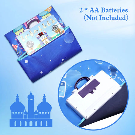 Descoperiți o experiență de învățare plină de bucurie și credință cu Covorașul de rugăciune musulman electronic cu mărgele Tasbi interactive pentru copii de la Jugacool. Confecționat din fibră de bambus 100%, acest covor de rugăciune durabil și rezistent la decolorare combină tehnologia captivantă cu practica tradițională pentru a ajuta copiii să învețe mișcările corecte de rugăciune, să recite Surah-uri și să crească în închinarea zilnică. Senzorii avansați de poziție ghidează posturile corecte, în timp ce un ecran LED clar afișează fiecare pas al rugăciunii și numără rakaat-urile finalizate. Îmbunătățiți concentrarea cu recitări încorporate ale Surah-urilor, duas esențiale și ghidaj clar pentru ablution (wudu), toate într-un design vibrant inspirat de mare, pe care copiii îl adoră. O busolă Qibla încorporată ajută la orientarea rugăciunilor oriunde, făcându-l un companion indispensabil pentru rugăciunea acasă, în sălile de clasă sau în călătorii. Notă: sunt necesare 3 baterii AA, dar nu sunt incluse. Acest covor este impermeabil și ignifug pentru o utilizare îndelungată și curățare ușoară, cu o suprafață confortabilă pentru o practică conștientă și respectuoasă.