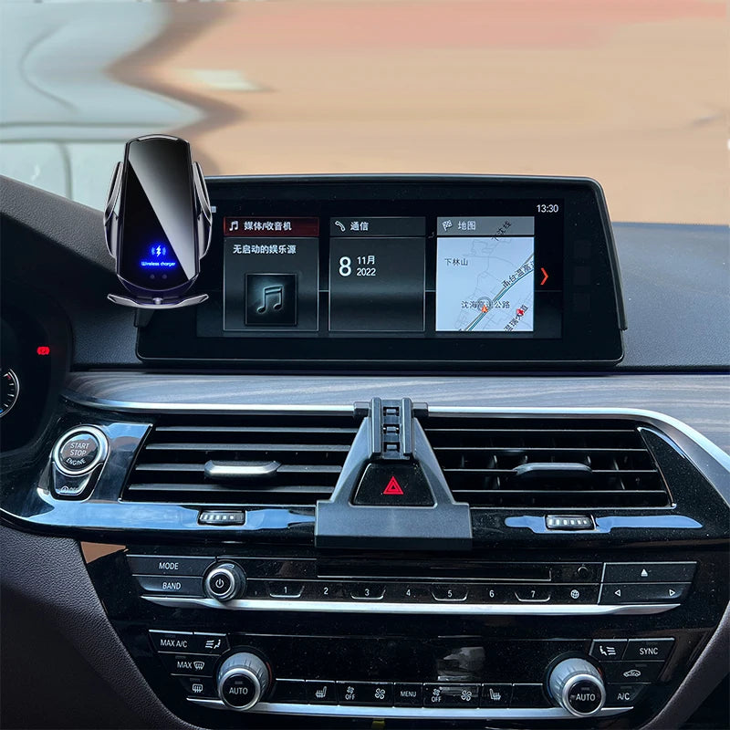 Experiența convenienței fără întreruperi pe drum cu suportul pentru telefon auto BMW 5 Series G30 G32 cu încărcare wireless de 15W. Creat pentru entuziaștii BMW, acest suport se potrivește cu BMW 5-Series G30 și G32 (inclusiv 6GT) din 2018 până în 2020, aliniindu-se perfect cu zona de afișare de 10,25 inci a mașinii pentru a-ți menține telefonul la îndemână.