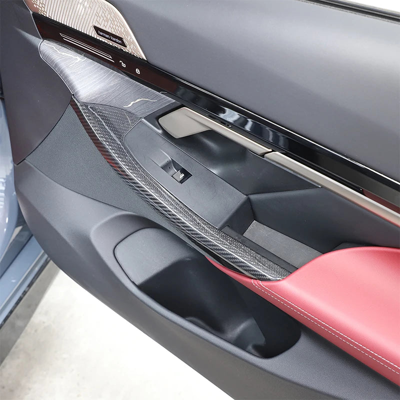 - Finisaj premium din fibră de carbon: Textura reală a fibrei de carbon adaugă profunzime și un sentiment de lux cadrului exterior al BMW-ului Seria 5 G60.