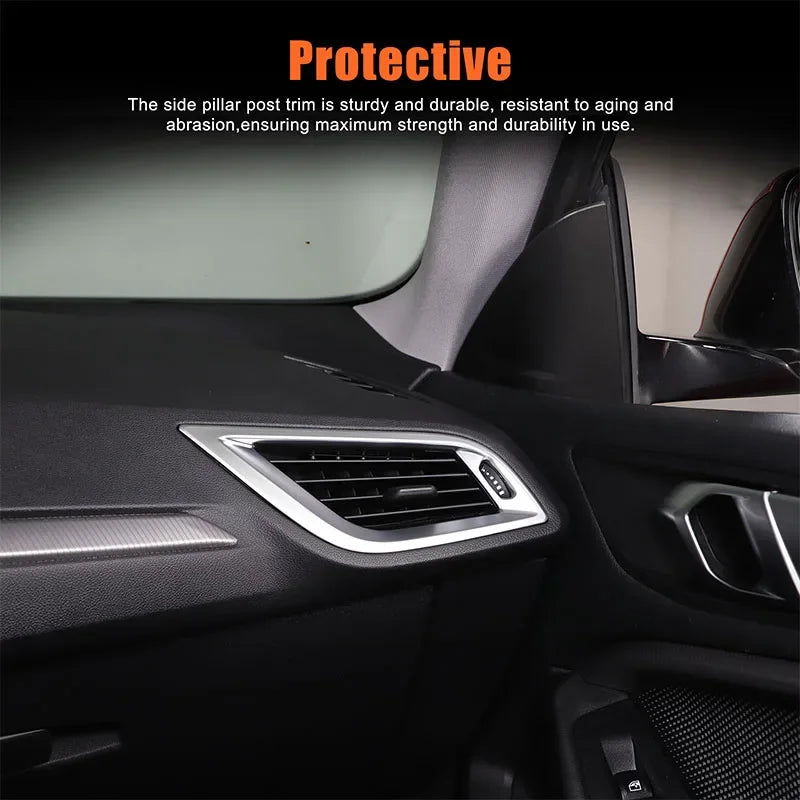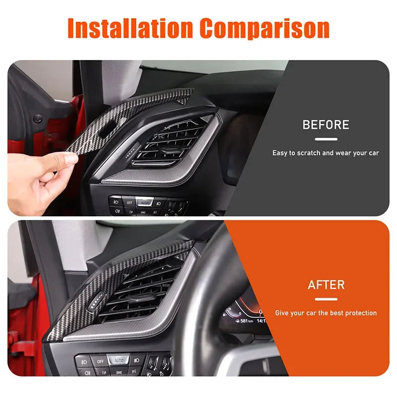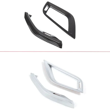 Îmbunătățiți aspectul interiorului BMW Seria 1 F40/F44 cu aceste rame pentru ieșirile de aer din fibră de carbon ABS. Această garnitură decorativă în 2 piese se potrivește perfect peste ieșirile laterale de aer, oferind un aspect elegant de fibră de carbon cu o margine subtilă argintie. Fabricate din plastic ABS durabil și produse într-o fabrică certificată ISO 9001, aceste rame sunt ușoare și proiectate pentru o instalare ușoară cu un adeziv dublu față inclus. Reîmprospătați interioarele plictisitoare și adăugați un finisaj premium, inspirat de sport, fără a compromite fluxul de aer.