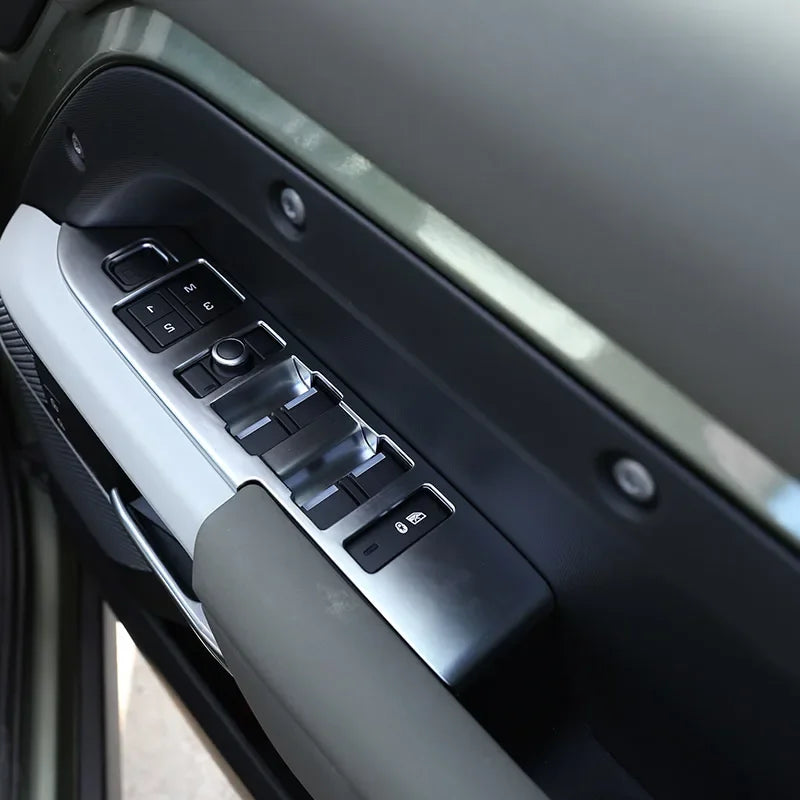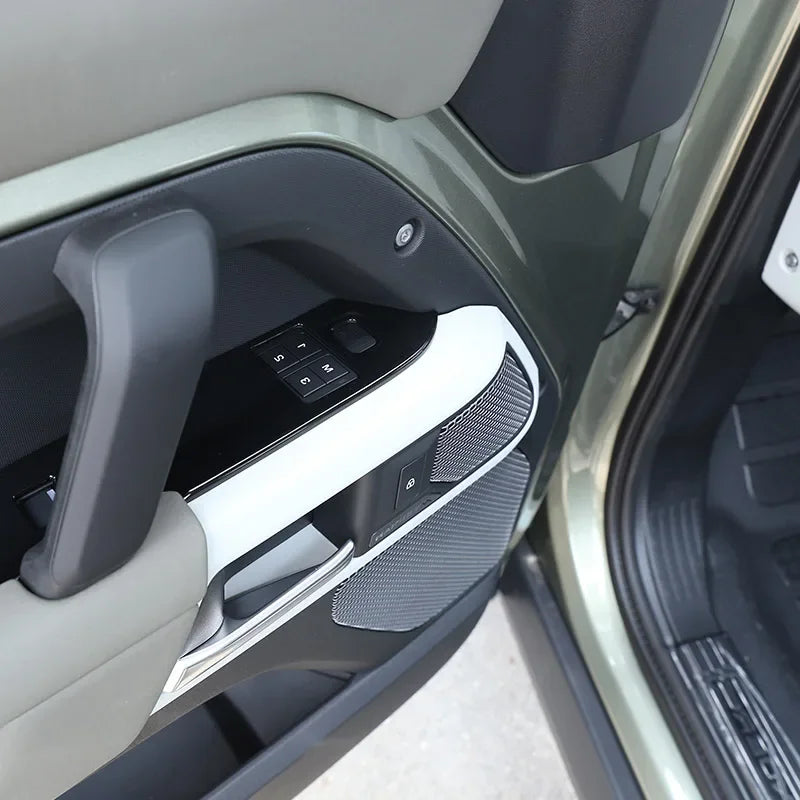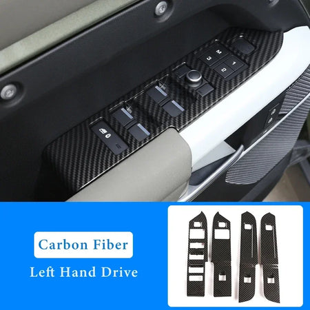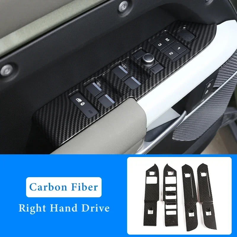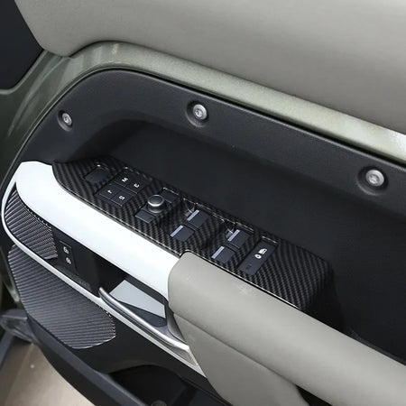 - 1 x Autocolant Rama Comutator Ridicare Geam ABS (Carbon) pentru Land Rover Defender 90/110 2020-2023 cu bandă adezivă auto pe spate