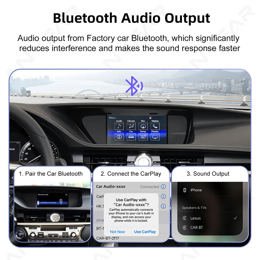 Îmbunătățește-ți Lexusul cu kitul de retrofit ANYFAR Lexus CarPlay și Android Auto, conceput pentru a aduce conectivitate modernă pentru smartphone în vehiculul tău fără a compromite aspectul și senzația originală. Această cutie de decodare Lexus adaugă funcționalitate CarPlay și Android Auto, păstrând în același timp afișajul OEM al tabloului de bord, controlerul rotativ și comenzile de pe volan pentru o experiență integrată, fără cusur.