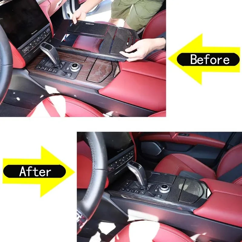 - Îmbunătățește estetica interiorului cu un aspect premium de fibră de carbon, protejând consola centrală de zgârieturi și uzură zilnică.