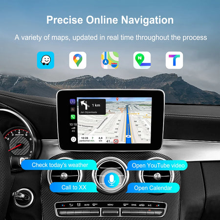 - Navigație îmbunătățită cu trafic în timp real: Utilizați Google Maps, Waze sau Apple Maps cu actualizări de trafic live direct pe display-ul mașinii dumneavoastră.