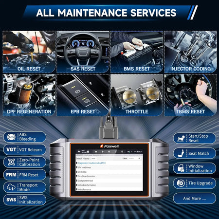 - Accesați peste 30 de servicii de resetare (sângerare ABS, SRS, înregistrare baterie, EPB, regenerare DPF, învățare clapetă/treaptă și altele) pentru a menține și restaura sistemele vehiculului fără a vizita un service.