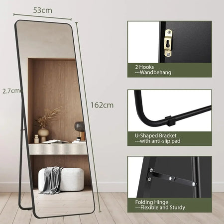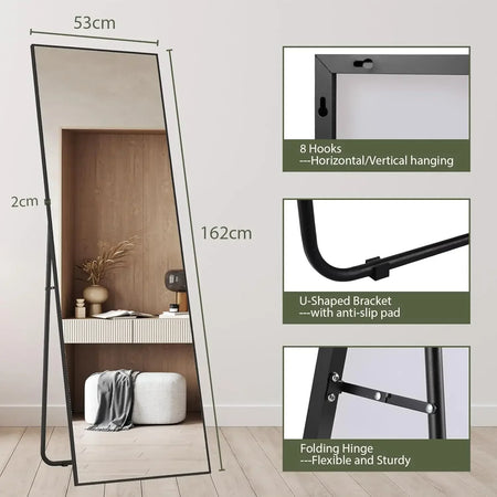 - Oglindă full-length cu ramă subțire din aliaj de aluminiu (162 x 53 cm)