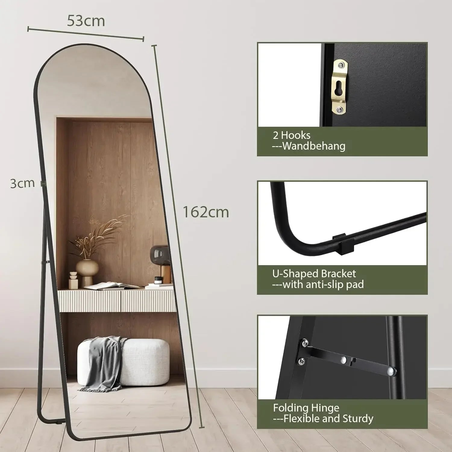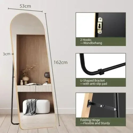 Prezentăm Oglinda Full Length 162x53cm — o soluție versatilă și elegantă care îmbină forma și funcționalitatea pentru orice spațiu. Această oglindă independentă poate sta singură, se poate sprijini de un perete sau poate fi montată pentru un aspect curat și fără cusur. Suprafața reflectorizantă extinsă de 162 x 53 cm luminează camerele prin reflectarea luminii în spațiu, făcând chiar și zonele mai mici să pară mai deschise și primitoare. Rama din aluminiu cu design arcuit, finisată în negru și auriu chic, adaugă o notă modernă care completează o gamă largă de decoruri — de la minimalist la glam. Sticla HD oferă o reflexie fără distorsiuni, iar o folie de protecție ajută la prevenirea stropirii în cazul în care sticla se sparge, sporind siguranța în gospodăriile aglomerate. Potrivită pe scară largă pentru sufragerii, dormitoare, dressinguri, holuri sau vitrine, această oglindă servește atât ca ajutor practic la îmbrăcat, cât și ca piesă decorativă elegantă. La intercyprus.com, oferim produse de încredere, cu calitate și grijă, din 2002.