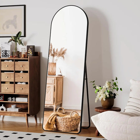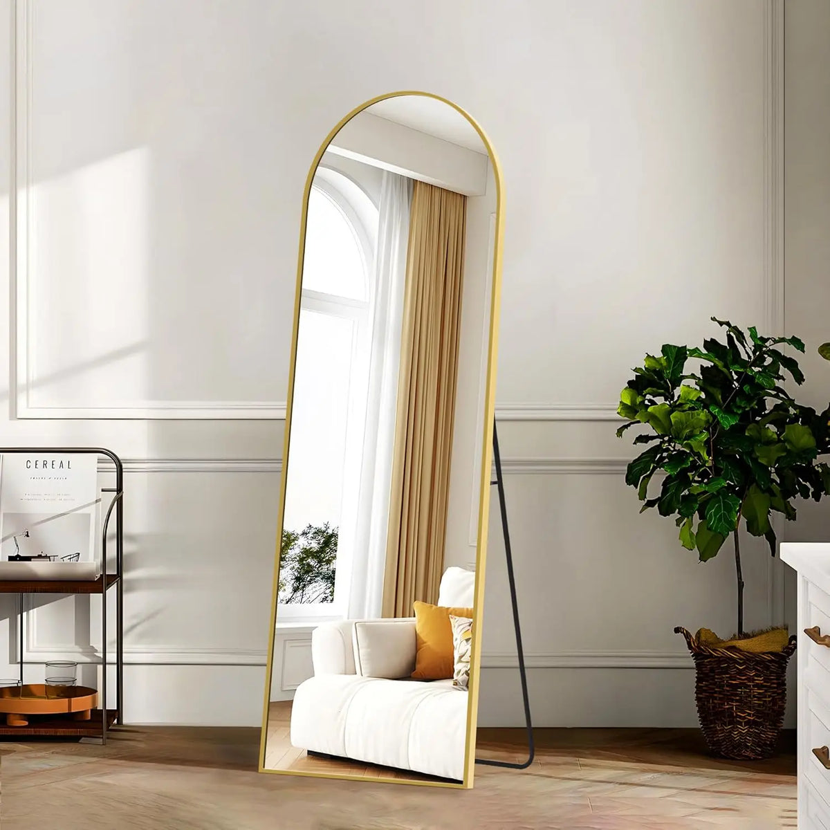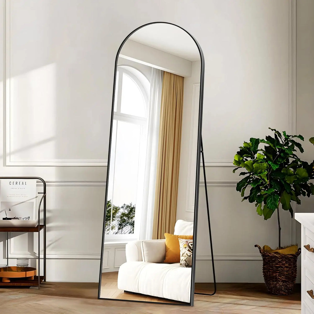 Oglindă Arcuată de Plină Lungime 162x50cm Cadru din Aluminiu cu Suport