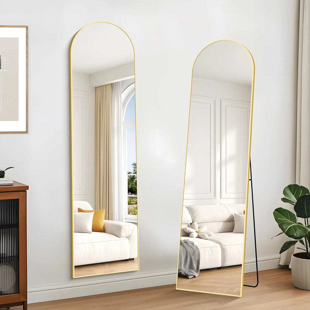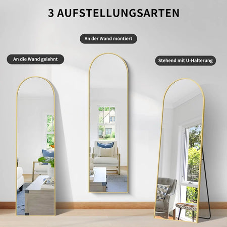 - Oglindă Arcuată Full Length (162 x 50 cm) cu cadru din aliaj de aluminiu și capacitate 2-în-1 de suport/ montare pe perete