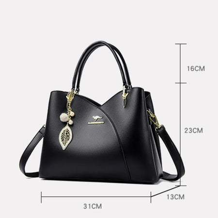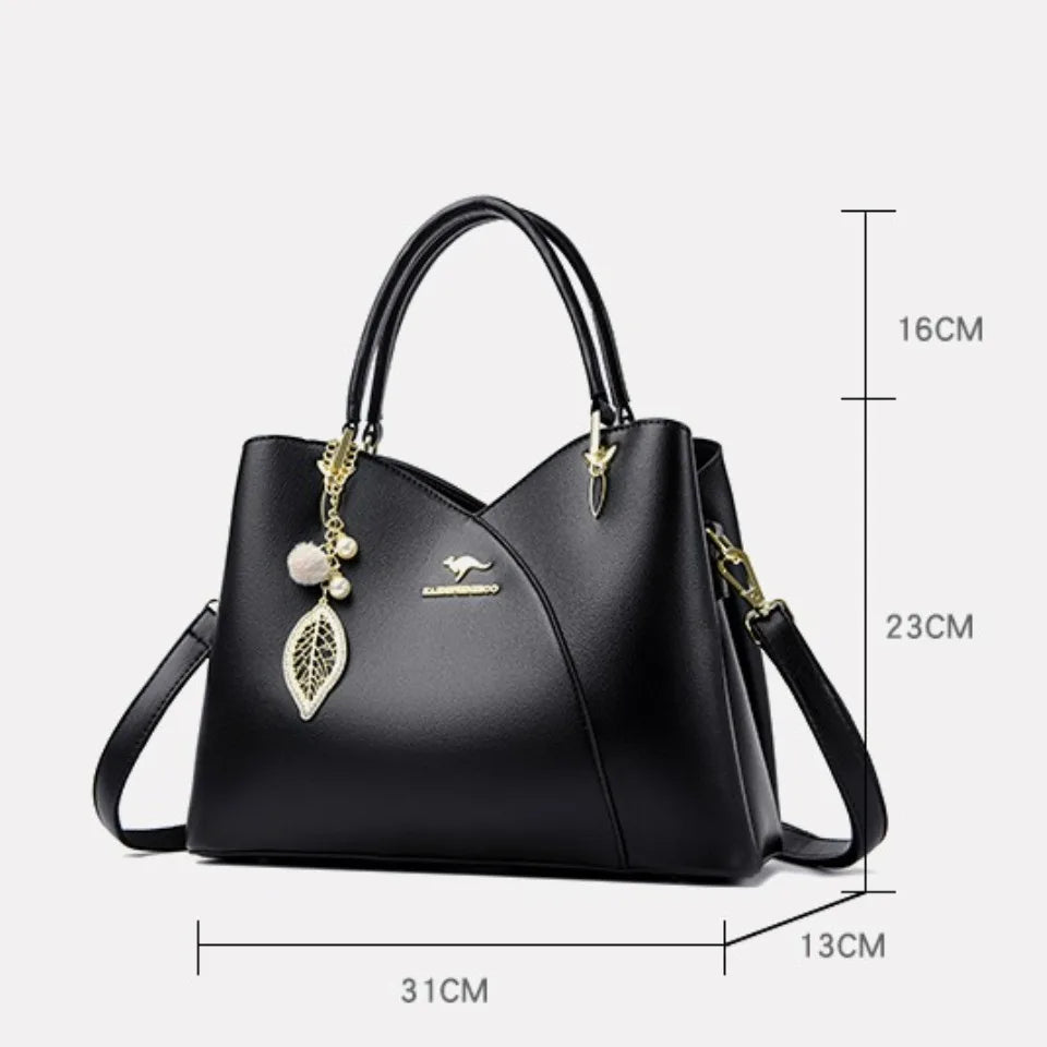 Descoperiți Geanta cu Trei Straturi din Piele PU Autentică pentru Femei, o geantă de umăr de lux, de designer, care îmbină stilul șic cu organizarea practică. Confecționată din piele PU de înaltă calitate, această geantă oferă o atingere moale și o senzație durabilă pentru utilizarea zilnică. Designul cu trei straturi păstrează esențialele bine separate, astfel încât să puteți ajunge la telefon, portofel și cosmetice fără să căutați într-un singur compartiment. Decorațiunea elegantă cu frunze aurii adaugă o notă rafinată oricărei ținute, fie că sunteți la birou, în călătorie sau într-o zi casual.