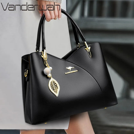 Genți de mână din piele PU autentică cu trei straturi pentru femei, geantă de umăr de lux, de designer