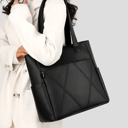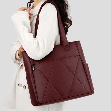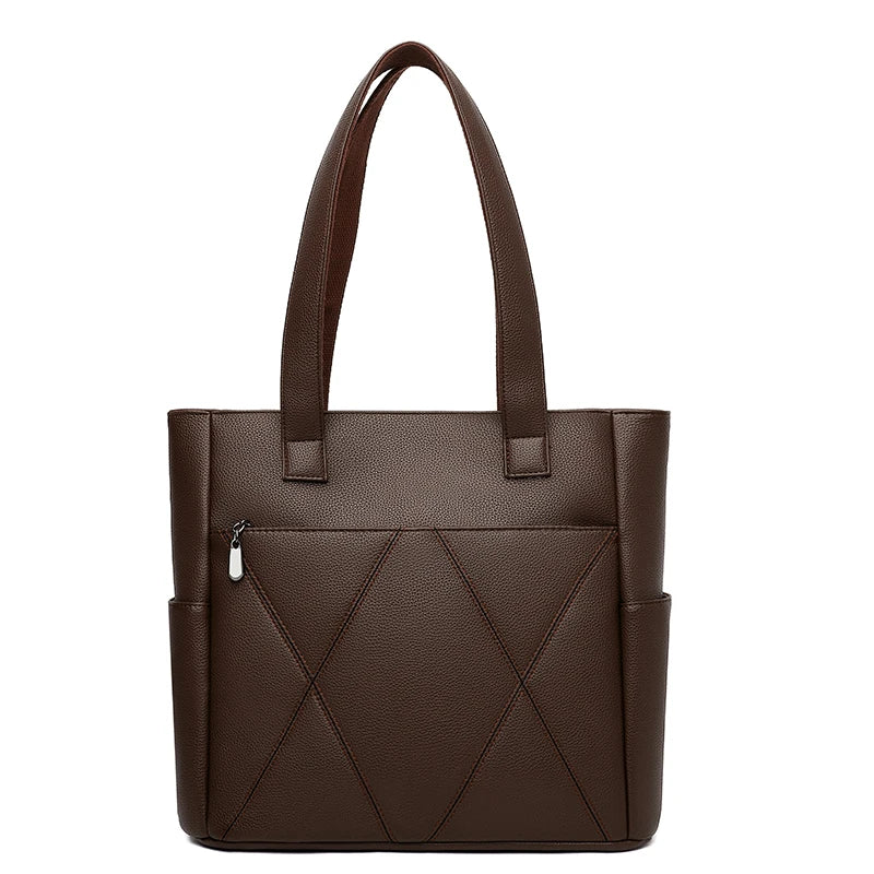 Geantă Tote din piele naturală pentru femei — lux casual potrivit pentru orice sezon. Această geantă versatilă poate fi purtată ca geantă de umăr sau crossbody, având o închidere sigură cu fermoar care păstrează bunurile în siguranță și organizate în mișcare. Buzunarele interioare bine gândite oferă spații dedicate pentru telefon, carduri și obiecte de valoare, în timp ce compartimentul principal spațios gestionează cu ușurință esențialele zilnice. Designul clasic cu cusături și finisajul moale oferă un aspect rafinat, la modă, care se potrivește cu ținute de la haine de birou la denim de weekend.