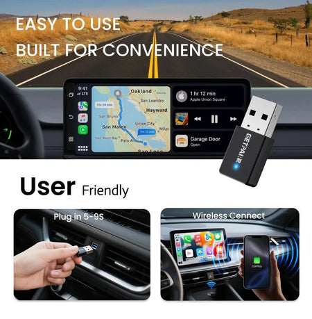 Experimentați adevăratul CarPlay și Android Auto wireless în Mercedes-Benz-ul dumneavoastră cu adaptorul GetPairr Mercedes-Benz Mini Ultra 2-în-1 Wireless CarPlay Android Auto. Acest dispozitiv compact, plug-and-play aduce CarPlay și Android Auto fără întreruperi la sistemul cablat din fabrică, menținând interiorul mașinii ordonat în timp ce vă bucurați de hărți, apeluri, mesaje și muzică fără cabluri. Folosește Wi-Fi dual-band (2.4 GHz și 5 GHz) pentru conexiuni rapide și stabile și se conectează automat imediat ce porniți mașina, astfel încât telefonul să rămână în siguranță în buzunar sau geantă.