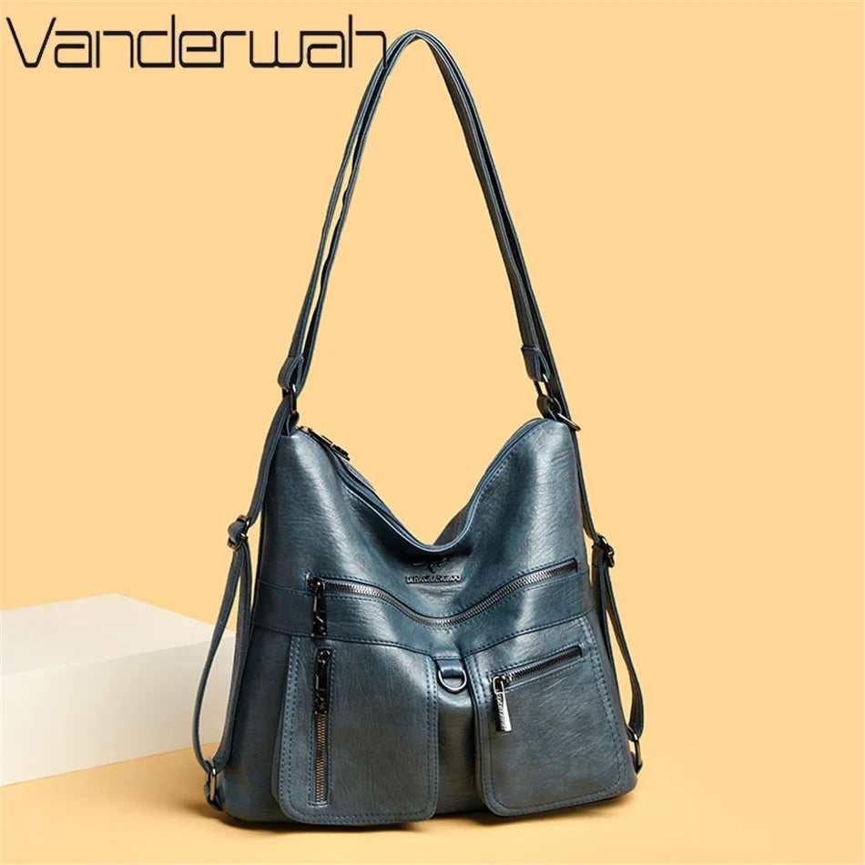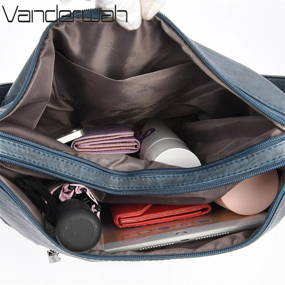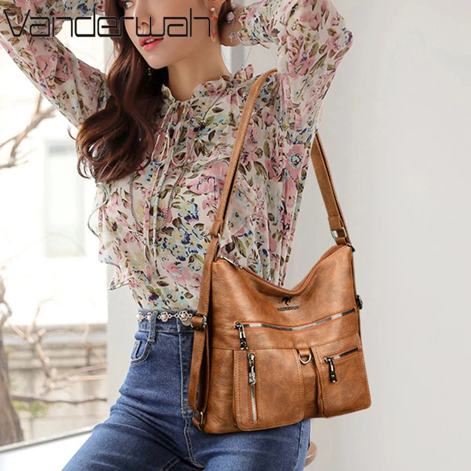 Geantă de mână de lux din piele pentru femei, geantă multifuncțională de designer cu fermoar, geantă de umăr pentru călătorii