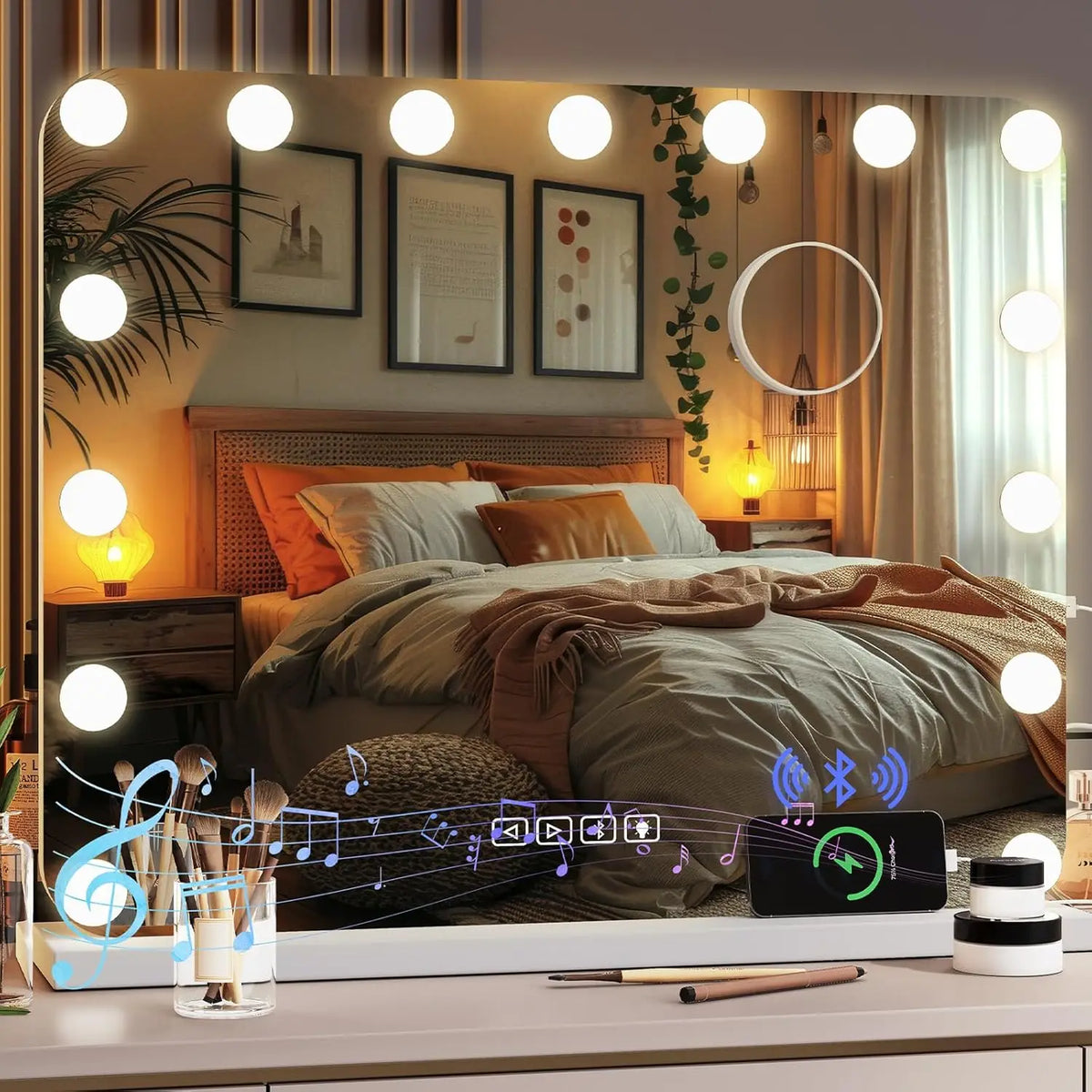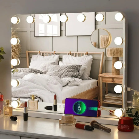 Îmbunătățiți rutina zilnică de machiaj cu Hollywood Vanity Mirror With Lights de la Homfa. Această oglindă modernă, dreptunghiulară, adaugă iluminare de calitate profesională biroului, comodei sau toaletei dvs., asigurând că culorile machiajului apar corect în orice condiții de iluminare—zi sau noapte. Iluminarea tricoloră (Rece, Natural, Cald) vă permite să adaptați atmosfera la tonul pielii și ocazie, în timp ce cele 15 becuri LED reglabile oferă o iluminare puternică și uniformă cu mai puțină strălucire.
