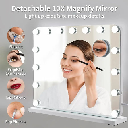 Oglindă de toaletă Hollywood cu lumini 15 LED-uri dimabile USB