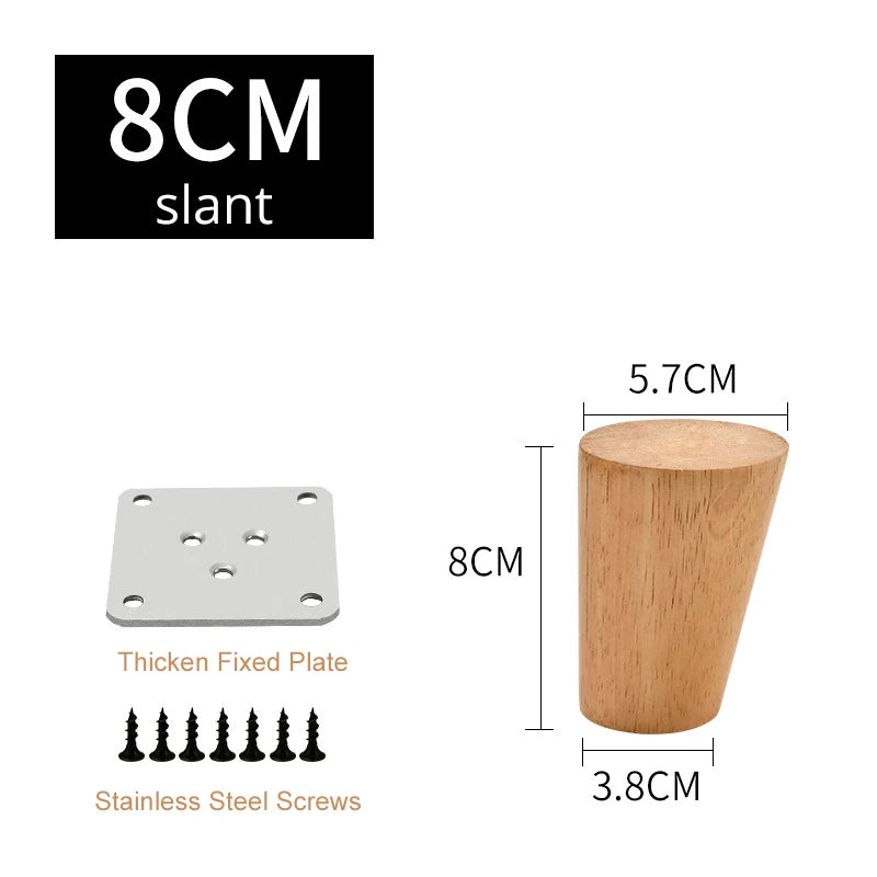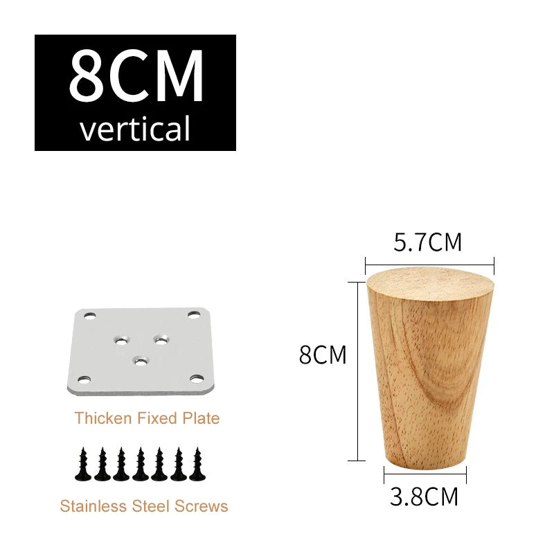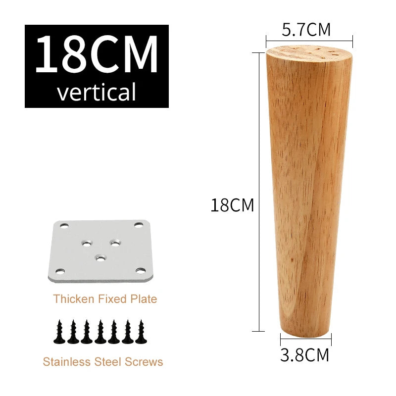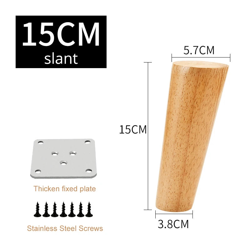 Îmbunătățiți și înlocuiți picioarele uzate ale mobilierului cu Picioarele de Masă din Lemn Masiv Natural pentru Canapea Pat de la KAK. Acest set de picioare din lemn masiv cu finisaj natural oferă atât stil, cât și stabilitate pentru canapele, paturi, dulapuri și altele. Suportă două stiluri de montare—Vertical și Înclinat—și o gamă largă de lungimi de la 8 cm la 70 cm pentru a se potrivi perfect înălțimii mobilierului dumneavoastră. Kitul include un picior din lemn, o placă fixă din oțel inoxidabil, o protecție și 7 șuruburi din oțel inoxidabil pentru o instalare rapidă și sigură. Dacă aveți nevoie de opțiunea de 70 cm, vă rugăm să ne contactați pentru disponibilitate. Pachetul standard include un picior de 20 cm, așa cum este listat.