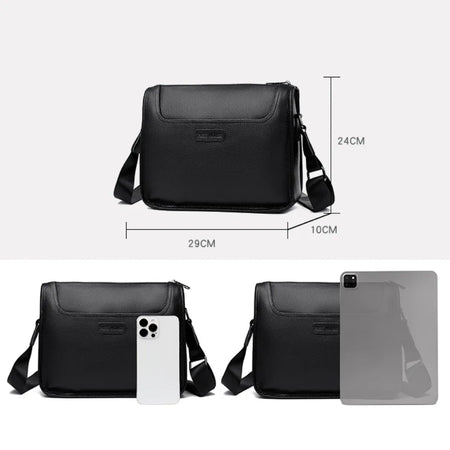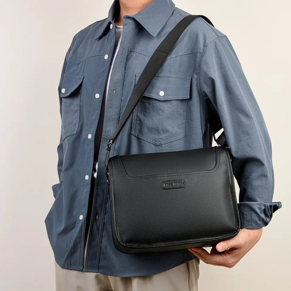 - 1 x Geantă de umăr pentru bărbați din piele naturală de vacă de lux