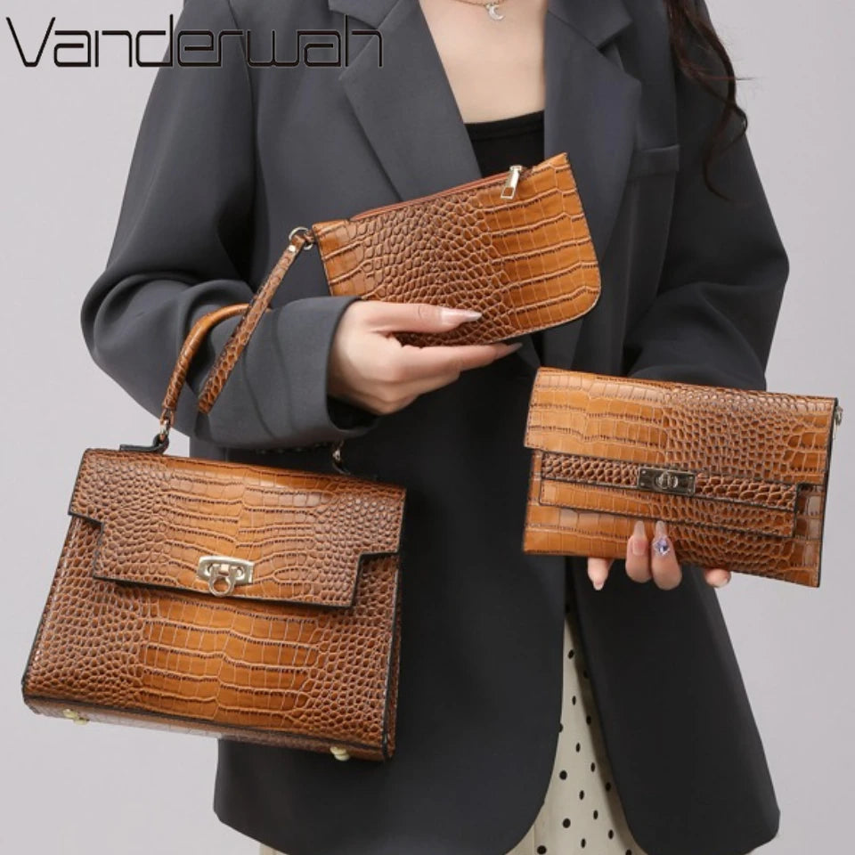 Geantă de mână din piele PU cu model de aligator pentru femei, geantă tote, de umăr și crossbody