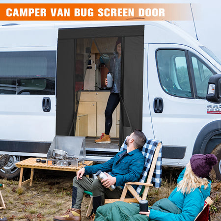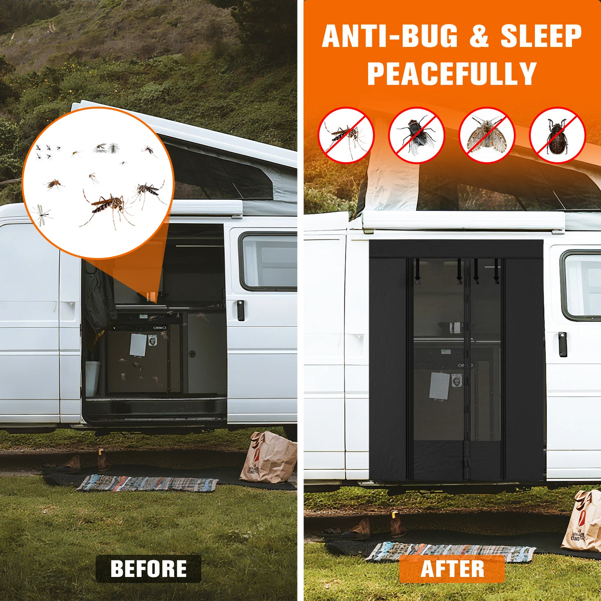 Îmbunătățește-ți echipamentul de camping VW T5 sau T6 cu Ușa Ecran Magnetică Plasă Anti-Țânțari pentru uși glisante. Confecționată din material rezistent la rupere 420D PA + Textilene, oferă protecție solară și blocare eficientă a insectelor fără a obstrucționa vederea. Plasa de înaltă densitate păstrează intimitatea, permițând în același timp o circulație bună a aerului, menținând camperul răcoros și confortabil.
