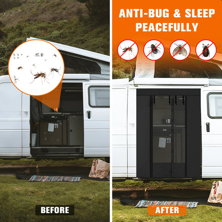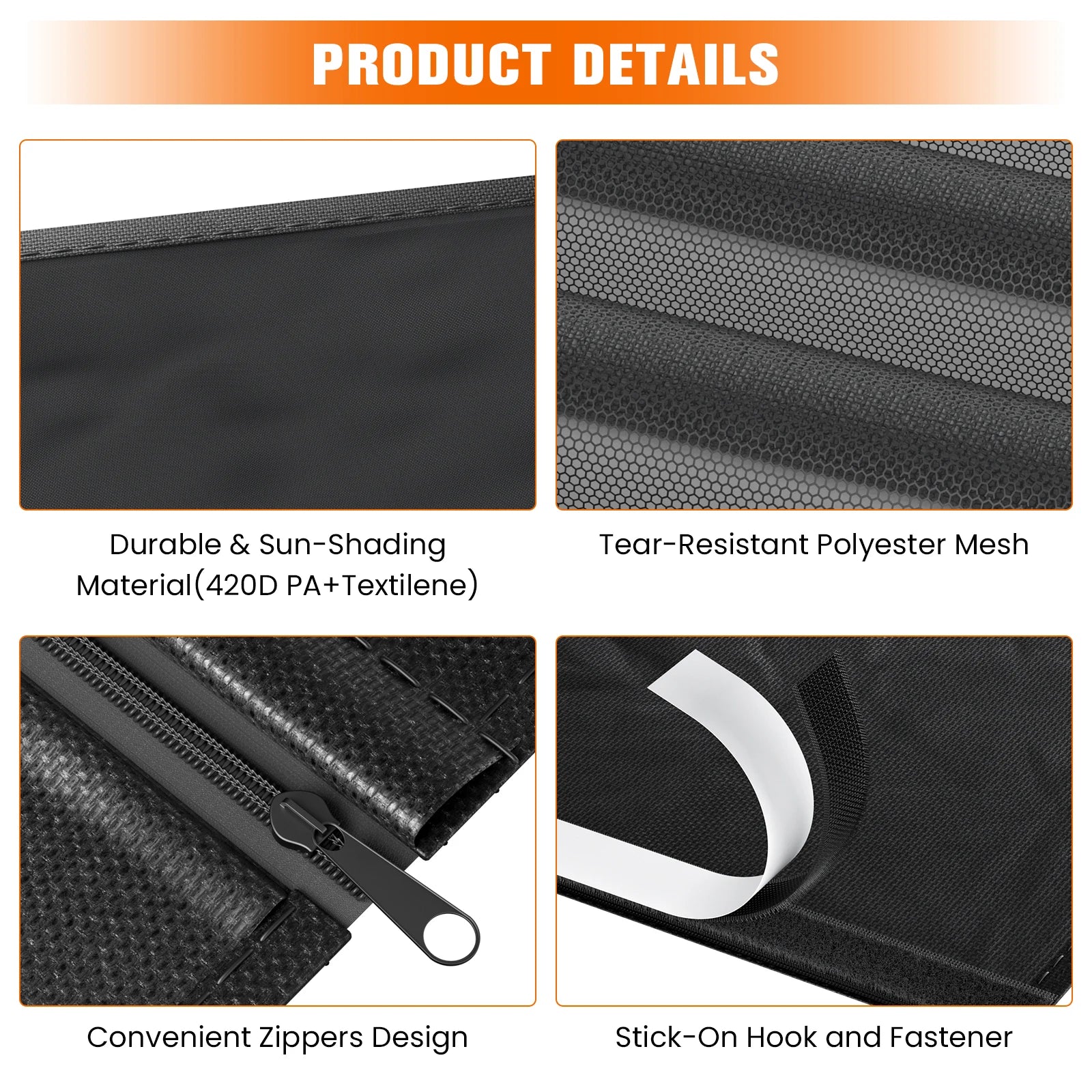 Ușor de instalat cu cleme puternice cu cârlig și buclă și benzi adezive—nu sunt necesare unelte sau găurire. Proiectat special pentru ușile glisante VW T5 și T6 (verifică detaliile dimensiunii în descriere). Ușa folosește magneți și fermoar pentru o intrare și ieșire lină, iar curelele reglabile cu cataramă permit rularea și fixarea rapidă când ai nevoie de acces rapid sau vrei să te bucuri de priveliște. Ultra-ușor dar robust, se pliază ordonat când nu este folosit, economisind spațiu în camperul VW.