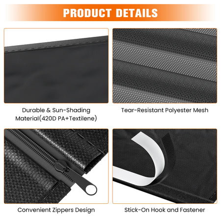 - Intimitate + Respirabilitate: Plasa blochează lumina soarelui pentru intimitate, permițând în același timp circulația aerului.