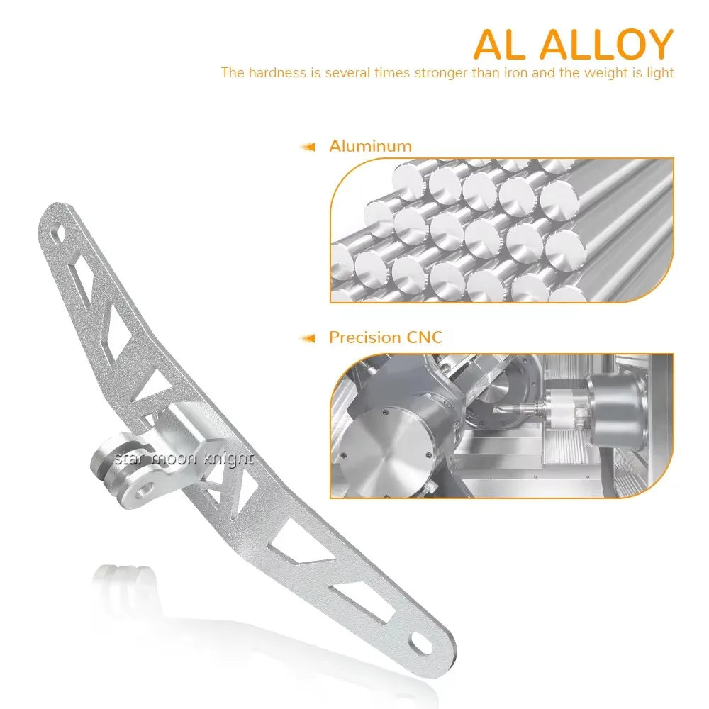 Suportul pentru cameră GoPro BMW R 1300 GS este un suport specific pentru parbrizul motocicletei, conceput să plaseze camera GoPro în poziția perfectă pentru condus. CamRack poziționează camera în fața parbrizului, menținând-o ferită de vibrații și oferind imagini stabile. Se aliniază cu centrul de greutate al motocicletei pentru a minimiza mișcările de balans pe drum, oferindu-vă videoclipuri mai line, de calitate profesională în timpul mersului. Construit să reziste la presiuni mari ale vântului, se atașează sigur la punctele solide de prindere ale parbrizului BMW prin șuruburile și șaibele din plastic incluse, protejând parbrizul de deteriorări. Compatibil cu GoPro, GoPro Hero și camere de acțiune similare, acest suport argintiu din aluminiu prelucrat CNC oferă o soluție durabilă și cu profil redus pentru aventurile dvs. cu R1300GS 2023.