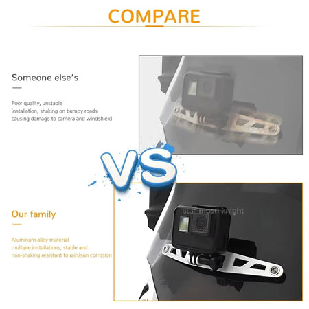 - Bucurați-vă de filmări mai line pe motocicletă, cu vibrații și zgomot de vânt reduse, montând camera aproape de centrul de greutate al parbrizului.