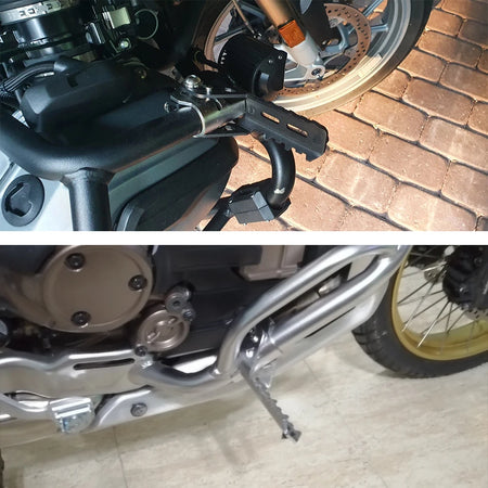 Fabricate din oțel inoxidabil 304, aceste suporturi pentru picioare sunt construite să reziste rigorilor conducerii atât pe drumuri asfaltate, cât și off-road. Suprafețele zimțate oferă o prindere excepțională, chiar și cu bocanci grei, astfel încât poziția picioarelor rămâne sigură pe teren accidentat. Când traseul devine strâmt, designul pliabil menține suporturile strânse lângă motocicletă, reducând riscul de agățare și economisind spațiu în timpul transportului sau în locuri înguste.