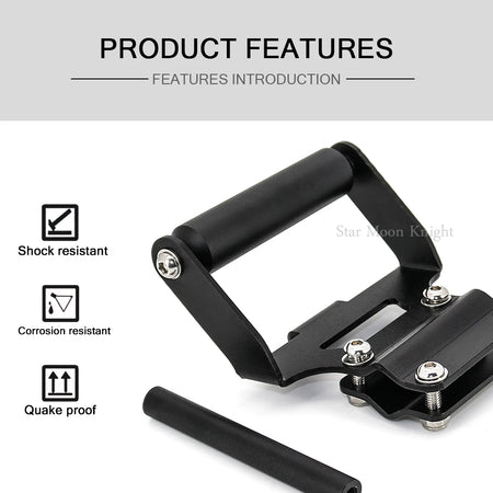 - Montare versatilă: atașează un sistem de navigație, suport pentru telefon, încuietoare pentru cască, încărcător rapid USB, brichetă USB sau un recorder de bord pentru curse mai sigure și mai convenabile.