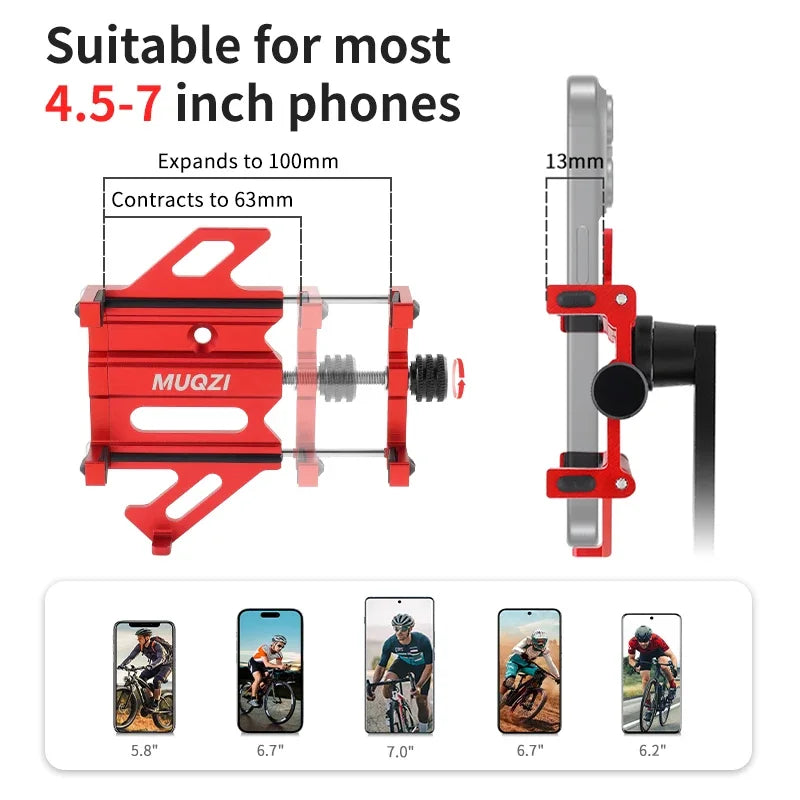 Descoperiți suportul telefon MUQZI pentru bicicletă — un suport robust, rotativ 360°, conceput pentru cicliști care cer siguranță, vizibilitate și acces facil. Se potrivește majorității telefoanelor de 4,5–7,0 inch și menține dispozitivul în siguranță în timpul mersului, fie că navigați cu GPS, răspundeți la apeluri sau ascultați playlistul. Fabricat din aliaj de aluminiu T6, oferă de 1–2 ori mai multă rezistență și durabilitate decât suporturile tradiționale din plastic sau silicon, oferind liniște sufletească pe orice traseu și în naveta zilnică.