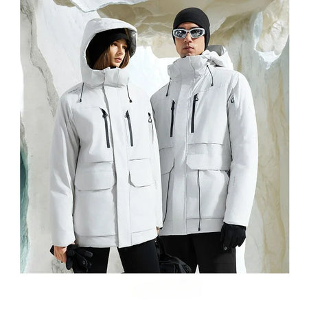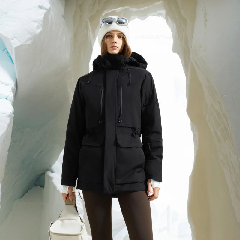 Designul cu glugă oferă o protecție suplimentară împotriva vântului și a lapoviței, în timp ce lungimea mare oferă o acoperire completă de la cap până la genunchi. Caracteristicile practice includ buzunare securizate și fermoare rezistente, oferindu-ți stocare convenabilă și o îmbrăcare/dezbrăcare ușoară, cu un aspect elegant și aerodinamic. Această geacă unisex se potrivește bine cu ținute casual, îmbrăcăminte de lucru sau straturi de weekend, făcându-o un element esențial pentru oricine caută o jachetă de iarnă stilată și funcțională.