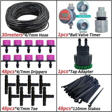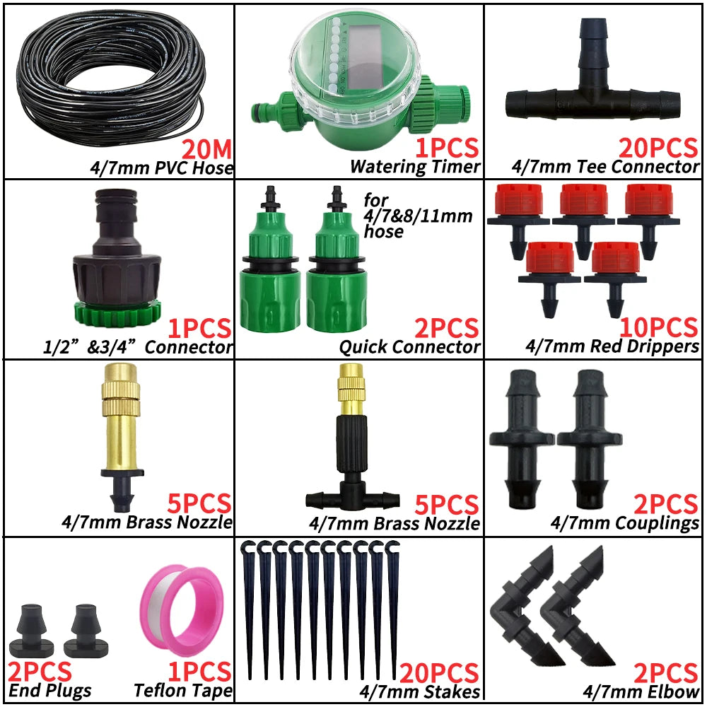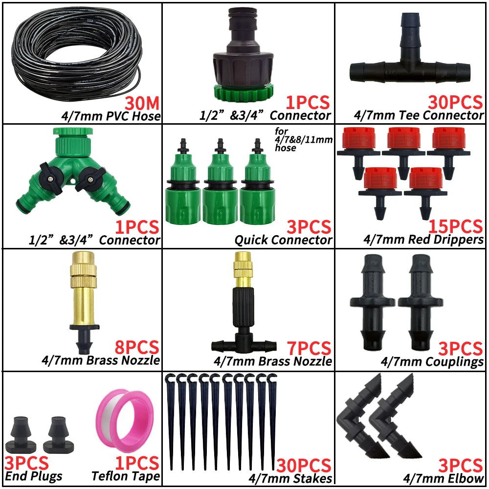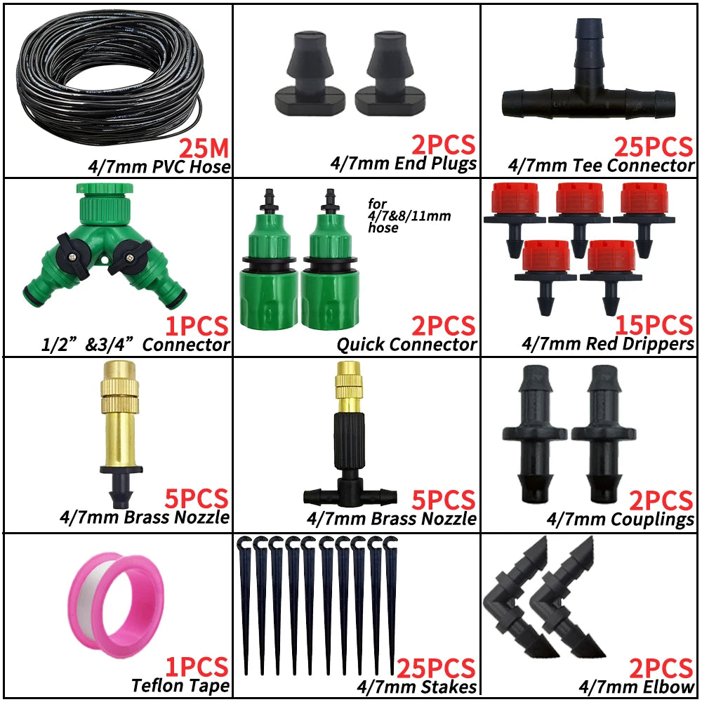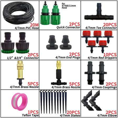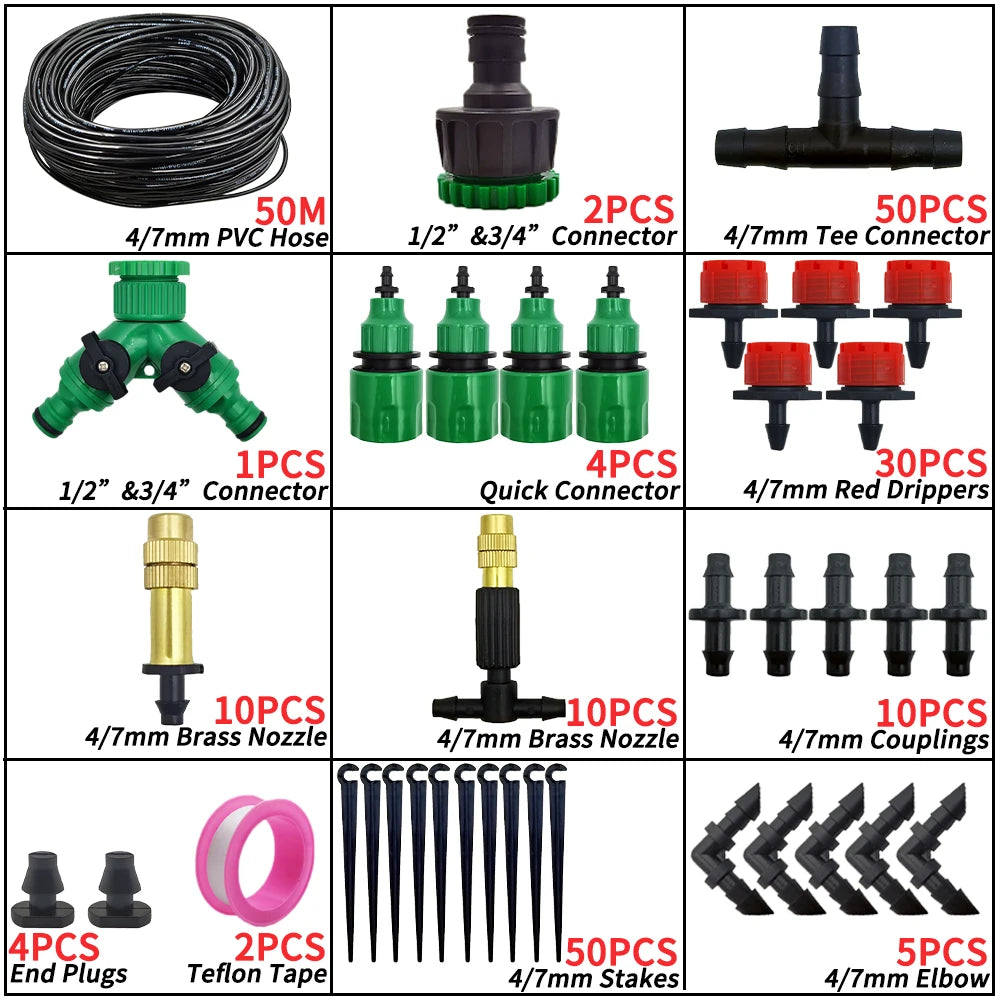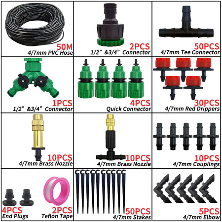 Pachetul include: Componente complete de micro drip dimensionate pentru o acoperire de 5–50M (tubulatură, emitatoare, conectori și țăruși pentru un sistem gata de instalat).