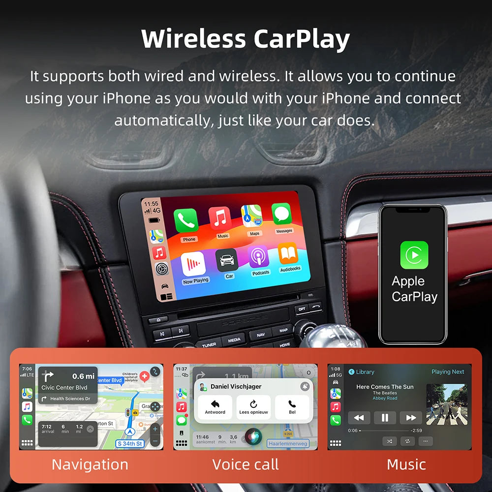 Porsche Cayenne Macan 911 CarPlay Wireless pentru PCM 4.0, Ecran de 7 Inchii