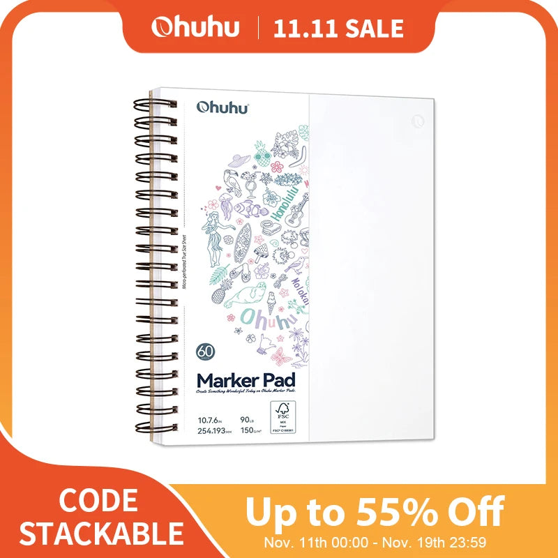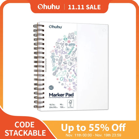 Bloc de desen cu marker dublu față Ohuhu, caiet de schițe rezistent la pătrunderea cernelei pentru markere pe bază de alcool