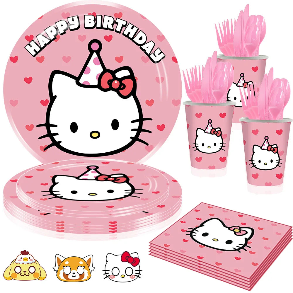 Tema de decorare roz pentru ziua de naștere Farfurii de petrecere de unică folosință Față de masă Pahar Șervețel Provizii pentru petrecerea de botez a fetiței