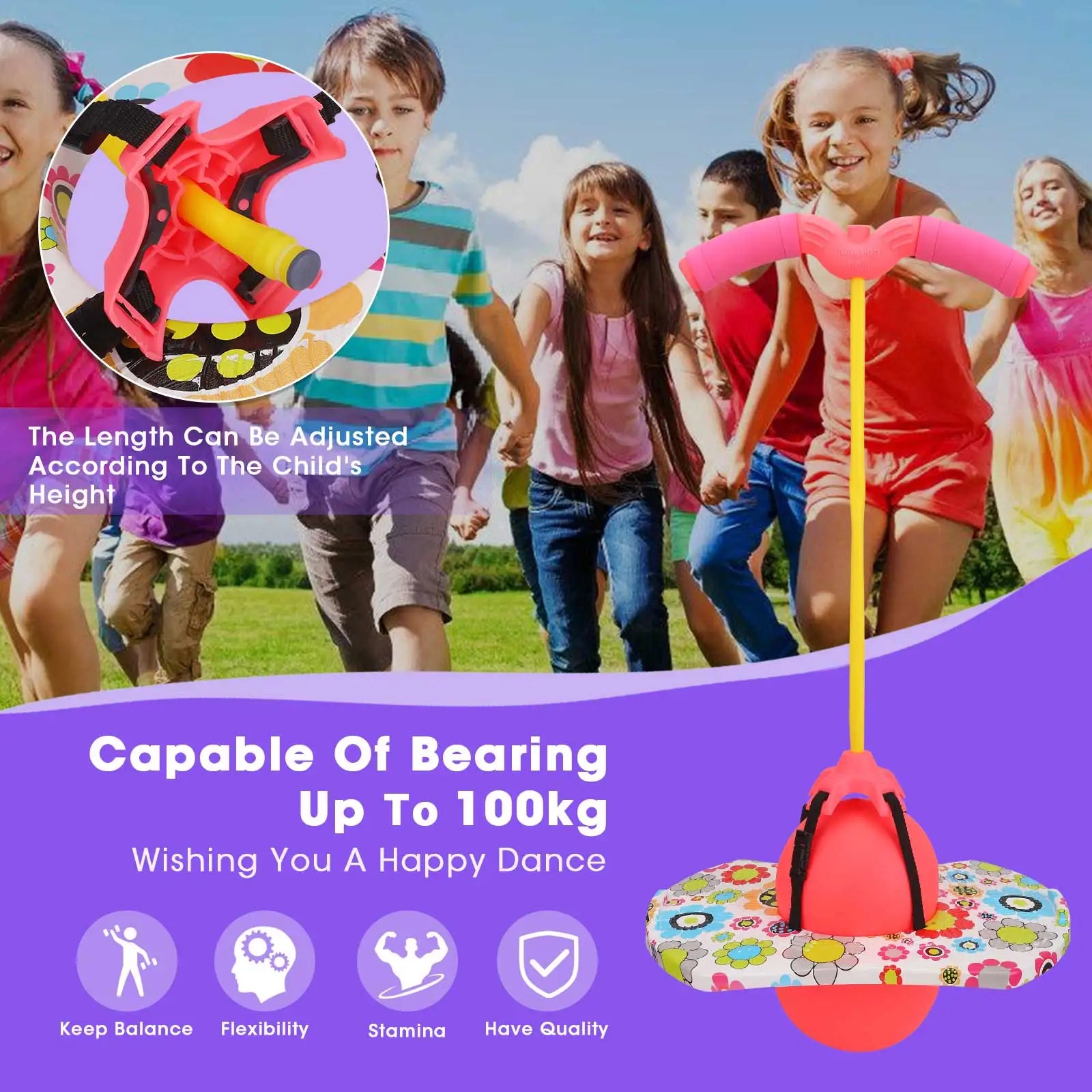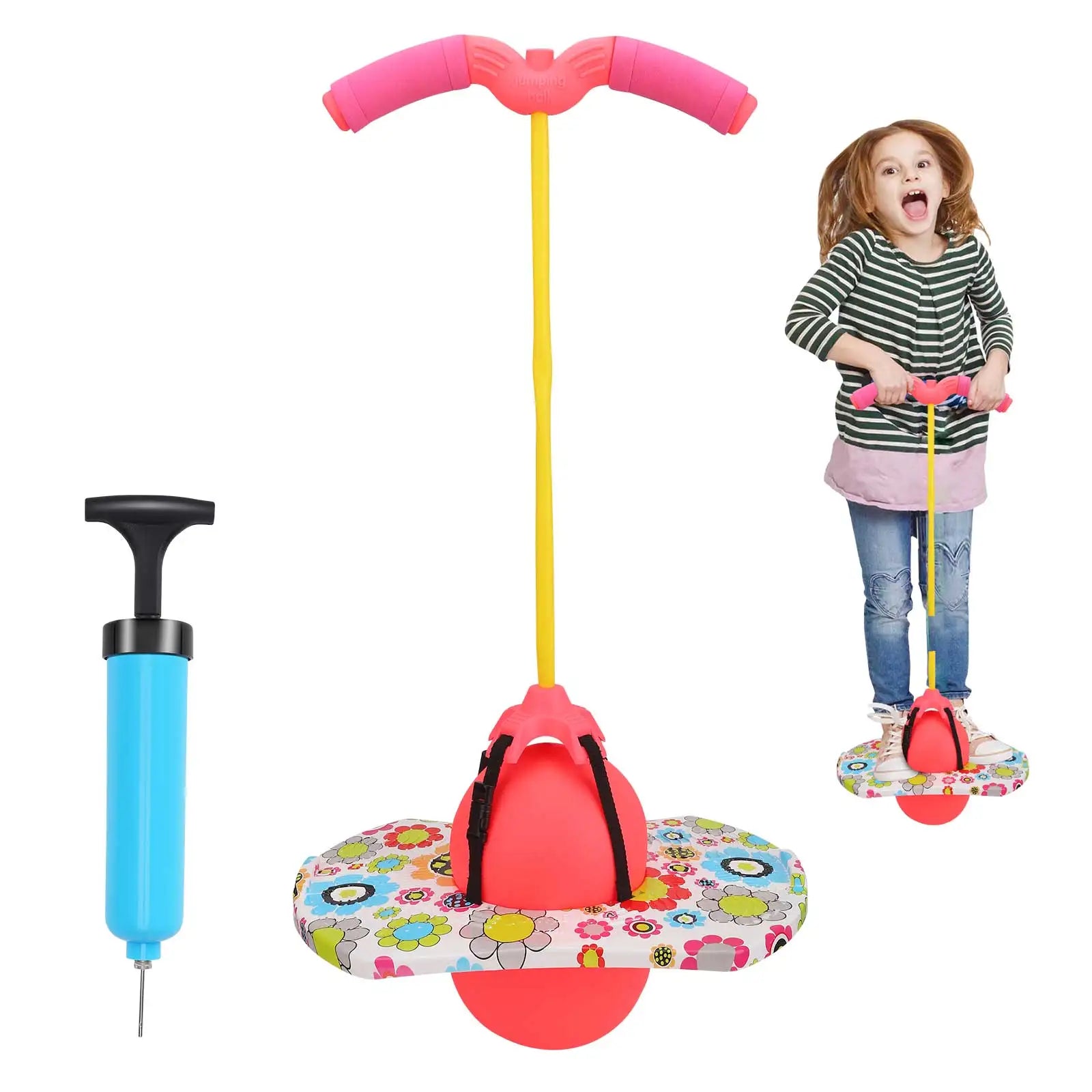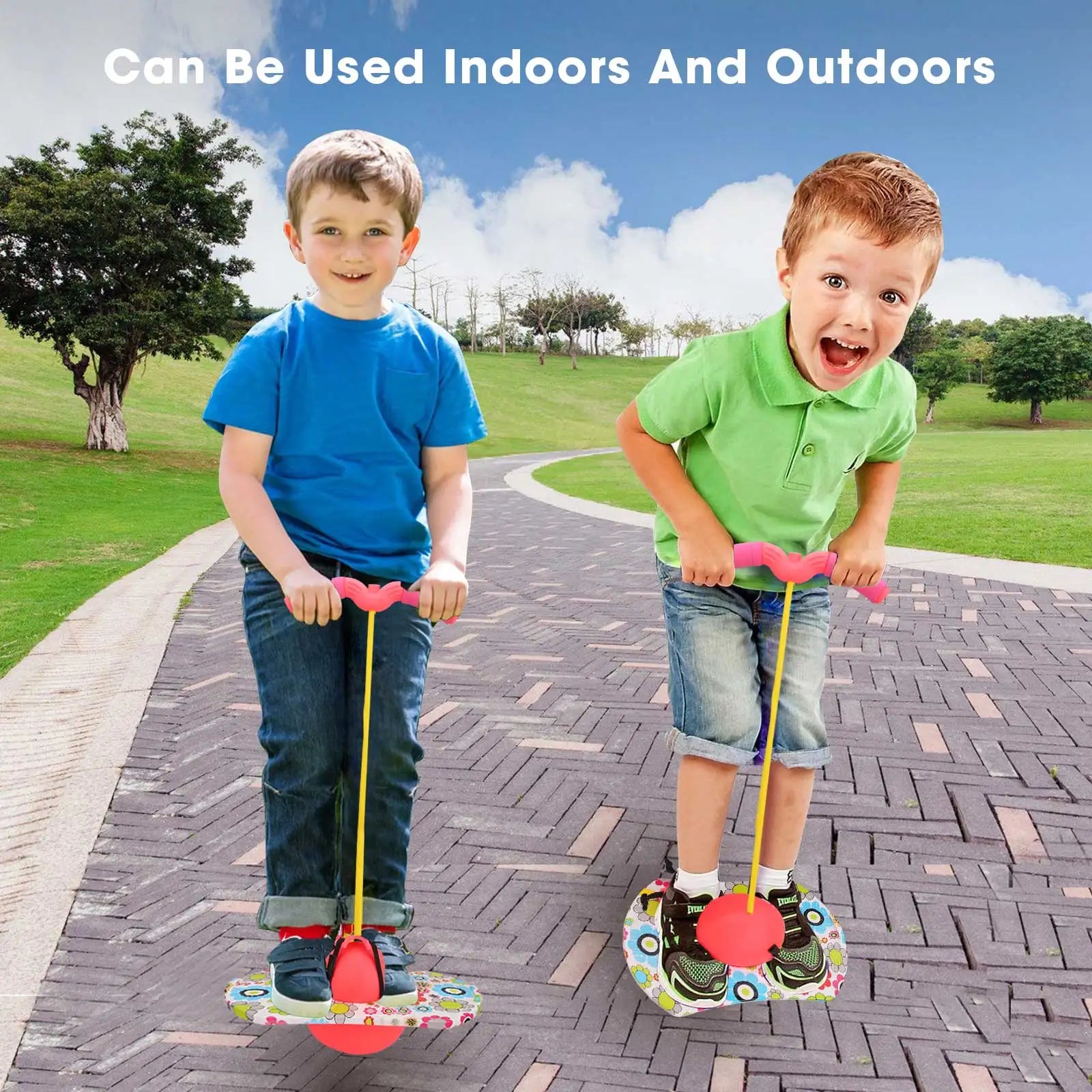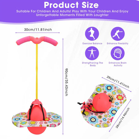 Concepută pentru joacă sigură, placa de sărit este antiderapantă și texturată, iar mingea este fabricată din PVC și PP ecologice, asigurând durabilitate și stabilitate în timp ce săriți, săriți coarda sau exersați coordonarea. Când echilibrul se îmbunătățește, îndepărtați mânerul pentru o provocare mai mare—perfect pentru a vă dezvolta abilitățile de sărit, asemănător cu un pogo stick pentru copii.