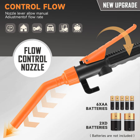 Descoperiți Pompă de transfer apă și combustibil cu baterie 2,4 Gal cu duză de control de la Jugacool — o soluție compactă, alimentată cu baterii, pentru transferul lichidelor, concepută să simplifice realimentarea și manipularea lichidelor. Perfectă pentru alimentarea mașinilor, tractoarelor, generatoarelor, ATV/UTV-urilor, mașinilor de tuns iarba, bărcilor și altele, această pompă mută lichidele rapid și curat. Funcționează cu 2 baterii DD sau 6 baterii AA (nu sunt incluse) și dispune de un furtun lung de 35,6 inchi, o duză de control și o oprire automată pentru a preveni supraumplerea. Fabricată din plastic netoxic, fără miros și rezistent la coroziune, suportă benzină, motorină, kerosen, apă și uleiuri ușoare. Se potrivește majorității rezervoarelor din plastic pentru combustibil cu deschideri mai mari de 33 mm, fiind o alegere versatilă pentru garajele de acasă și șantierele de lucru. Ușoară, dar durabilă, oferă până la 2,4 galoane pe minut pentru realimentare rapidă și transfer ușor, cu un suport pentru duză și un comutator simplu care vă eliberează mâinile în timpul utilizării.