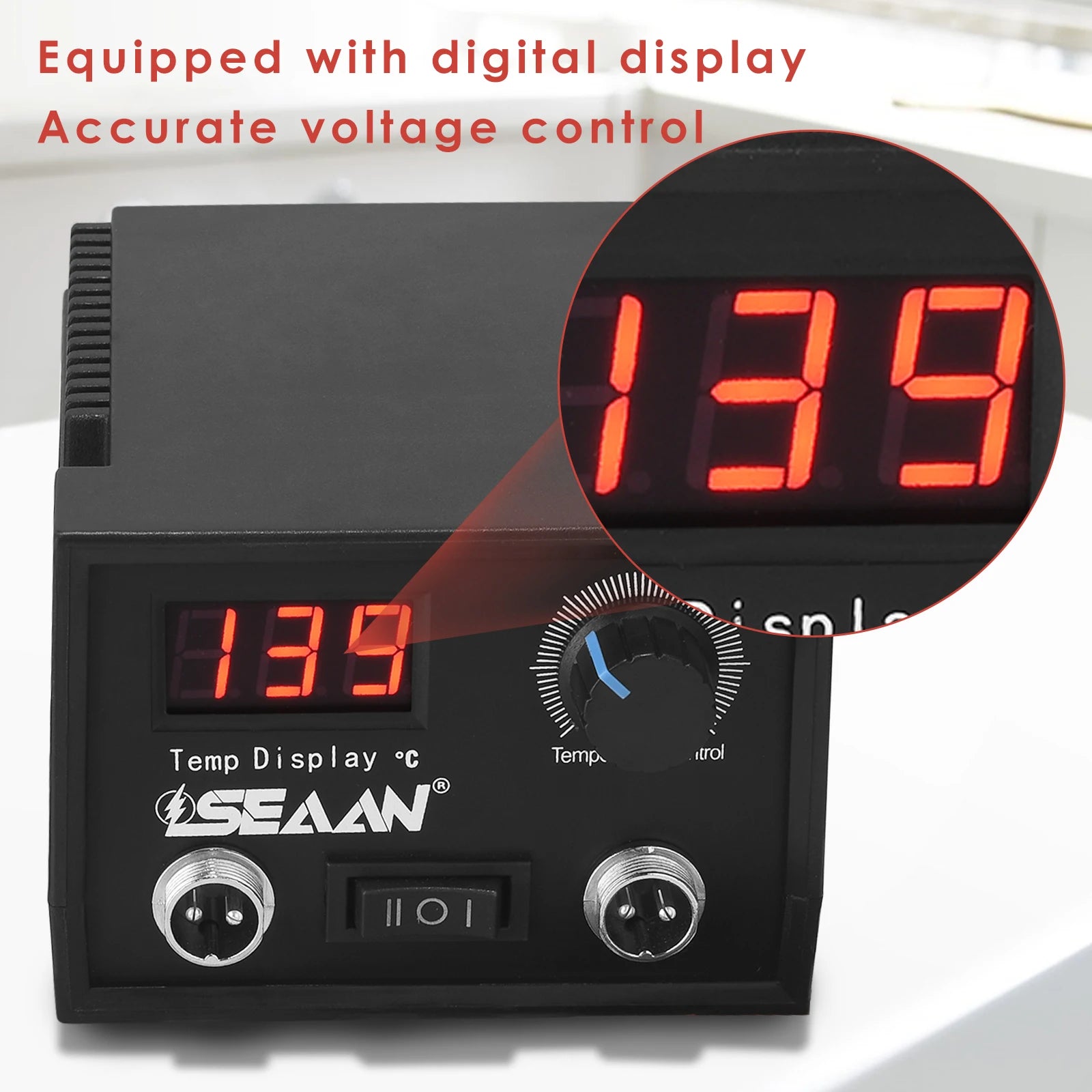 Acest dispozitiv dispune de un stilou universal de încălzire fină cu 23 de vârfuri interschimbabile și un afișaj digital intuitiv. Poți regla temperatura lin prin unitatea principală pentru a realiza pirogravură perfectă pe diferite materiale. Stiloul este ușor (aproximativ 33 g) și are un mâner moale antiderapant, oferind un echilibru și control excelent pentru sesiuni lungi și lucrări detaliate în colțuri strâmte.