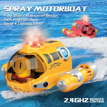 Descoperiți barca CONUSEA RC Speedboat cu lumini LED, o ambarcațiune gata de utilizare, construită pentru sesiuni palpitante în piscină, lac sau curte. Această barcă RC de 2,4 GHz oferă control precis pe 4 canale și un sistem luminos LED puternic pentru vizibilitate ridicată în timpul jocului ziua și noaptea. Atige viteze de până la 30 km/h cu direcție receptivă și rotații de 360° stânga/dreapta pentru acțiune dinamică. Funcția de pulverizare adaugă un plus de entuziasm, în timp ce bateria internă litiu 3,7V 500mAh oferă aproximativ 20 de minute de funcționare per încărcare, cu un timp de încărcare de aproximativ 70 de minute. Fabricată din plastic durabil și finisată în galben/roz viu, este proiectată pentru distracție în aer liber pe apă liniștită. Telecomanda funcționează pe o distanță de aproximativ 25 de metri, oferindu-vă spațiu suficient pentru a urmări acțiunea. Vârsta recomandată: 14+ ani, 3-6 ani, 6-12 ani. Toate echipamentele electronice și mecanice, dispozitivele și mașinile vândute de InterCyprus către țările UE sunt certificate CE și beneficiază de o garanție de doi ani. La intercyprus.com din 2002 — de încredere pentru calitate și fiabilitate.