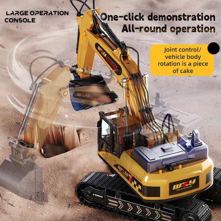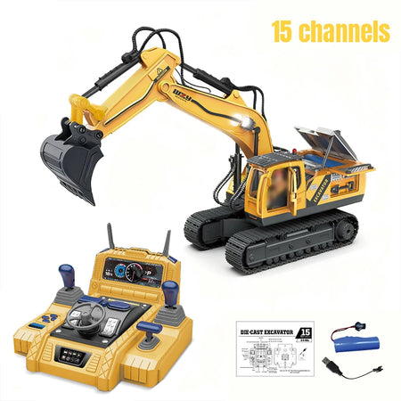 Controalele cheie îți permit să aduci precizie fiecărei operațiuni: mișcare înainte și înapoi, viraje la stânga și dreapta și rotație pe loc. Acțiunile independente de săpare pentru braț și cupă îți permit să recreezi sarcini reale de excavare, în timp ce luminile și muzica adaugă entuziasm fiecărei sesiuni. Versiunea cu 15 canale îți extinde jocul cu funcții suplimentare precum pulverizarea și demonstrația cu un singur clic, în timp ce versiunea cu 12 canale pune accent pe săparea și direcția de bază. Versiunea cu 13 canale adaugă efectul de pulverizare cu apă pentru și mai mult realism. Toate modelele folosesc o baterie reîncărcabilă Li‑ion 3,7V cu un timp de încărcare de aproximativ 60 de minute și un timp de funcționare de aproximativ 30 de minute. Telecomanda funcționează cu 3 baterii AA (nu sunt incluse).