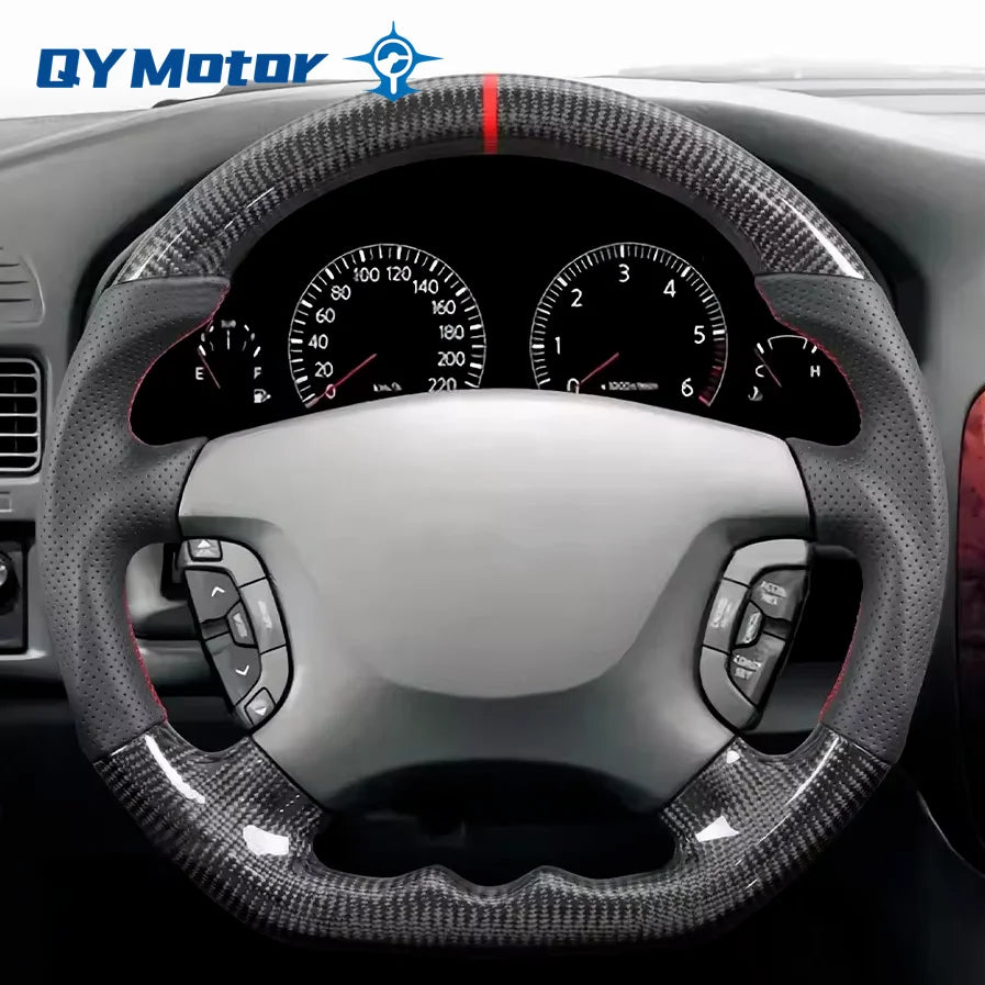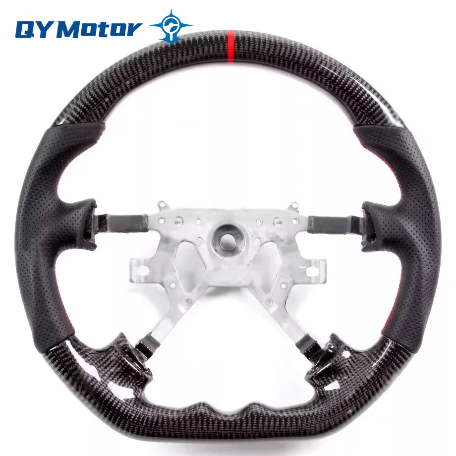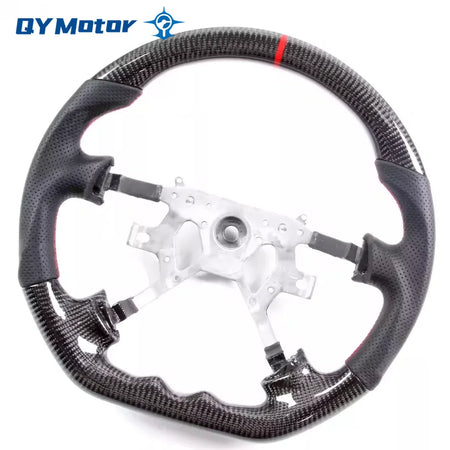 Îmbunătățește-ți Nissan Patrol Y61 cu acest volan premium realizat din fibră de carbon reală și îmbrăcat în piele perforată. Proiectat pentru performanță și stil, oferă o prindere încrezătoare, inspirată de curse, în timp ce îmbunătățește estetica cockpit-ului tău. Cusăturile îndrăznețe roșii și banda roșie de la 12 ore adaugă detalii izbitoare care ies în evidență în orice interior, ajutându-te să-ți identifici rapid centrul dintr-o privire și să te bucuri de o experiență de condus mai imersivă.