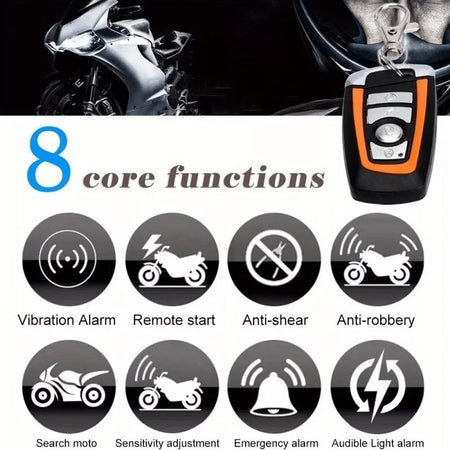 Pe lângă efectul de descurajare, alarma oferă imobilizarea motorului și funcționalitate anti-rapire pentru a opri furtul din fașă. Telecomanda oferă semnale sonore și luminoase pentru a vă ajuta să localizați rapid motocicleta într-o parcare aglomerată, iar raza de 150 metri în spațiu deschis vă oferă acces de la distanță fiabil.
