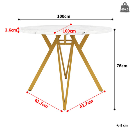 Masă de dining rotundă cu diametrul de 100cm și înălțimea de 76cm pentru patru persoane
