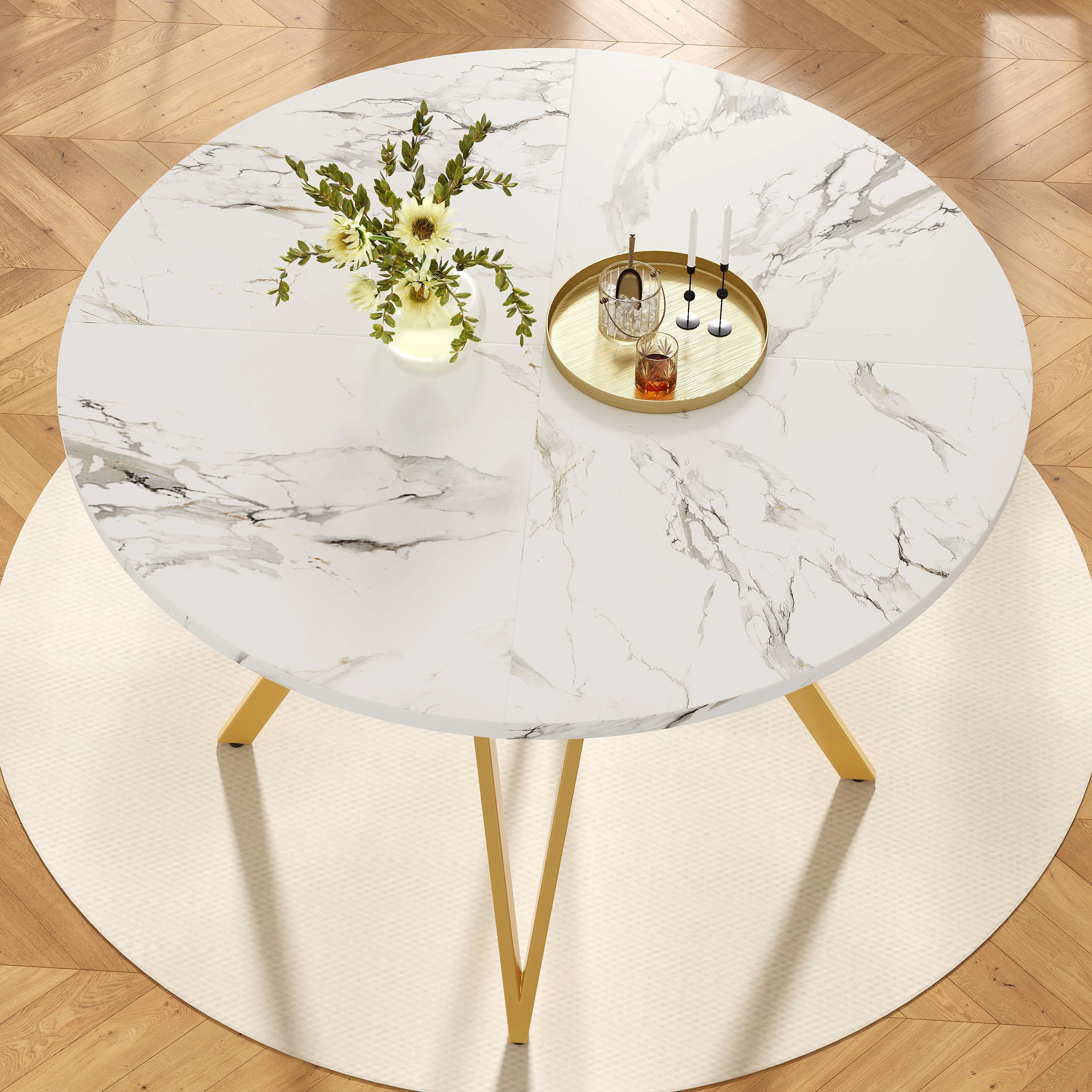 Masă rotundă de dining - diametru 100 cm, înălțime 76 cm proiectată pentru a găzdui confortabil patru persoane. Această masă practică combină o suprafață rotundă spațioasă cu un blat MDF inspirat de marmură, care arată rafinat, dar rezistă utilizării zilnice. Blatul îngroșat, de înaltă densitate, rezistă deformării și oferă o bază puternică de susținere, menținând mesele, cărțile și obiectele decorative în siguranță. Suprafața sa netedă și ușor de curățat permite ștergeri rapide după cine în familie, întâlniri sau sesiuni de studiu.