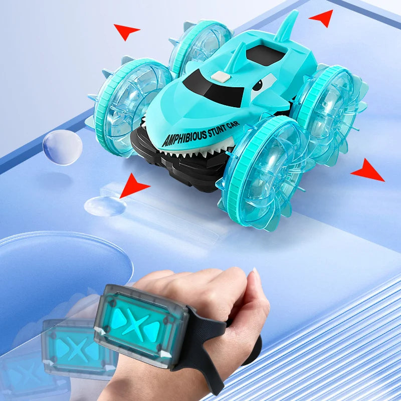 Descoperiți CONUSEA Shark RC Car Amfibiu cu Senzor de Gesturi 2.4G cu Lumini LED pentru Cascadorii — o mașină robustă, amfibie, controlată de la distanță, proiectată pentru aventuri palpitante pe uscat și pe apă. Cu un ceas impermeabil controlat prin gesturi, efecte LED impresionante și o legătură fiabilă de 2.4GHz, oferă cascadorii dinamice și performanță constantă indiferent dacă navigați pe lacuri, piscine, căzi sau străzi.
