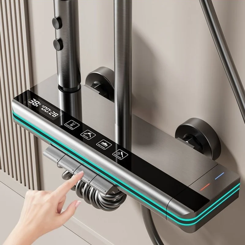 【Expediere din UE】Set complet de robinet de duș cu afișaj digital inteligent pentru temperatură, sistem de duș pentru baie cu mixer pentru apă caldă și rece